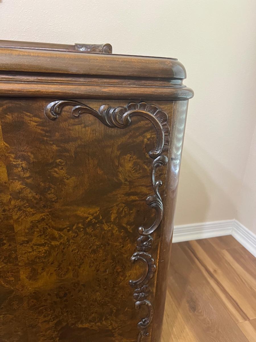 From Germany ~ Brought back from Germany ~ WWII Era ~ Drawers slide easy ~ Items inside sold separately ~ Has wear from age see photos ~ Has Key ~ 36” H x 79” W x 24” D ~ Heavy