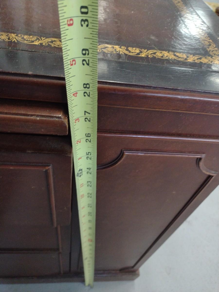 Vintage Mahogany Finish Leather Top Sideboard Choice B has some wear and scratches to the finish as shown