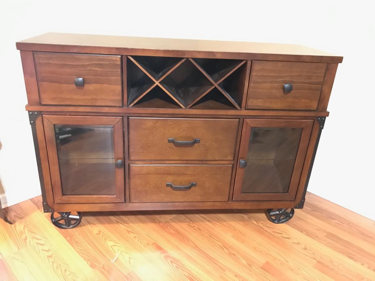 Buffet Cabinet w/Wine Rack, 4 Drawers, 2 Doors