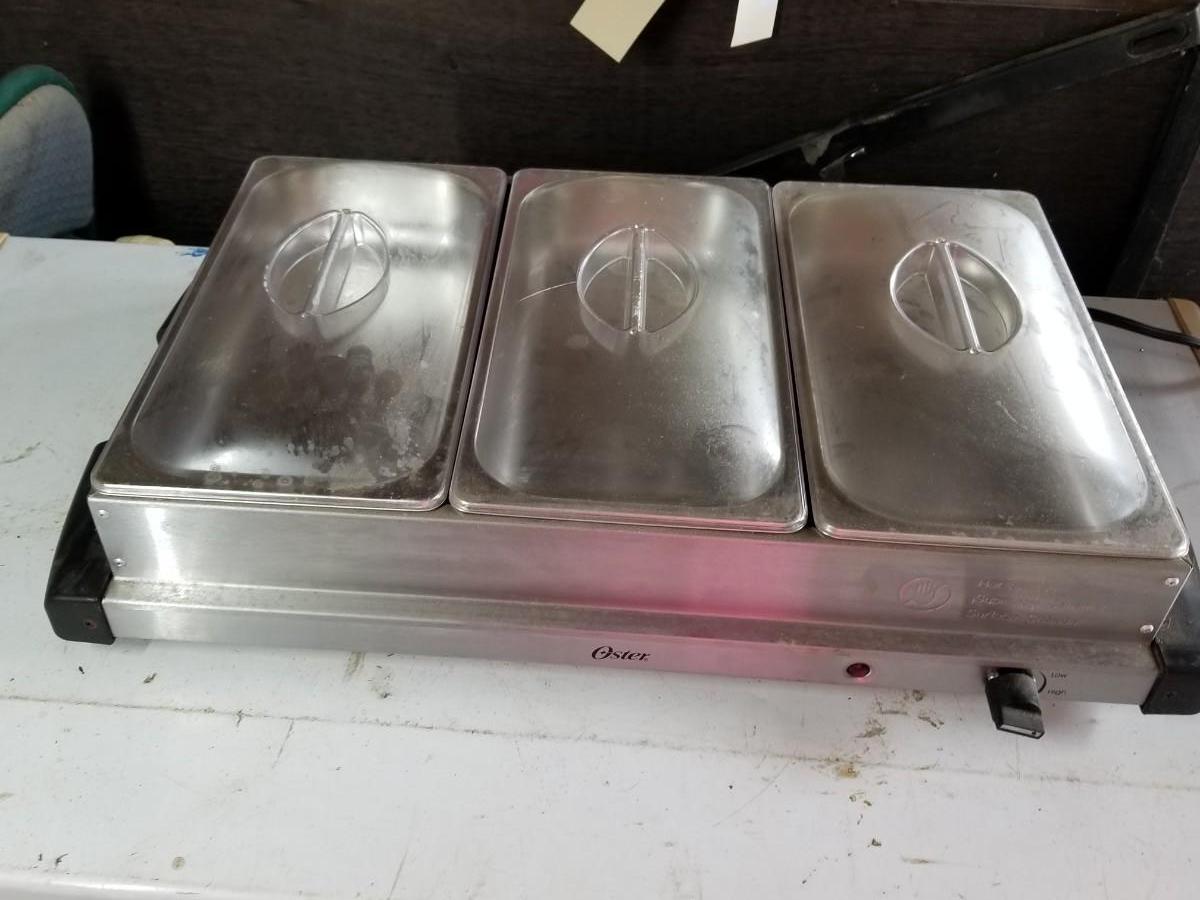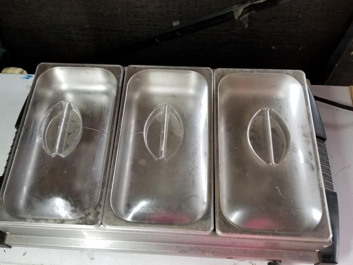 3 crock pot server and a 3 section warmer