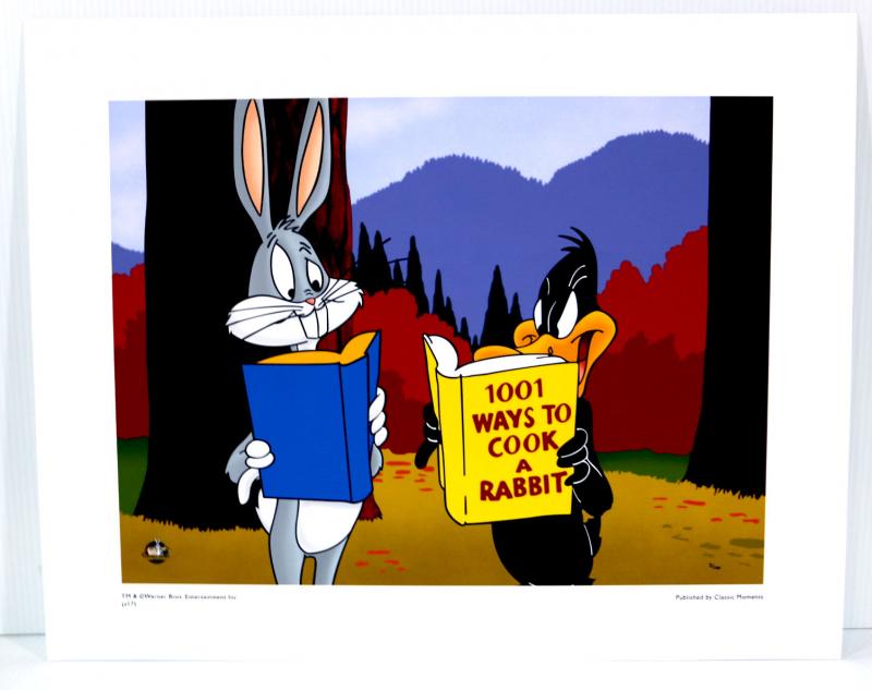 "1001 Ways To Cook A Rabbit" featuring Bugs Bunny and Daffy Duck reading - Giclee Art Print with COA, Low edition of 100 and this one is numbered with #5 of 100 -Collector's Item!