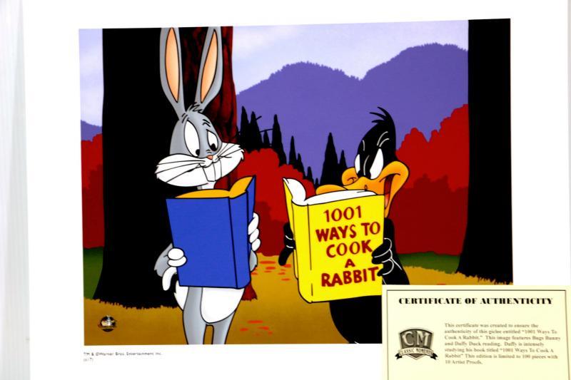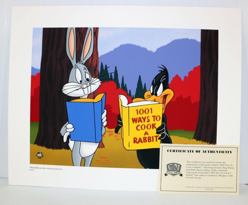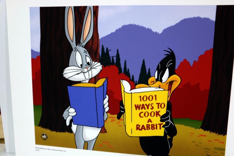 "1001 Ways To Cook A Rabbit" featuring Bugs Bunny and Daffy Duck reading - Giclee Art Print with COA, Low edition of 100 and this one is numbered with #5 of 100 -Collector's Item!