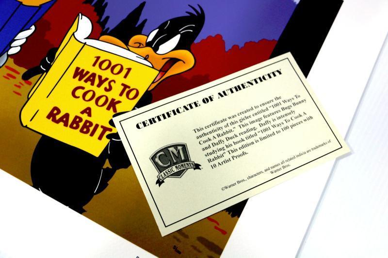 "1001 Ways To Cook A Rabbit" featuring Bugs Bunny and Daffy Duck reading - Giclee Art Print with COA, Low edition of 100 and this one is numbered with #5 of 100, Image size: 16" x 12", Full print size: 20" x 16" -Collector's Item!