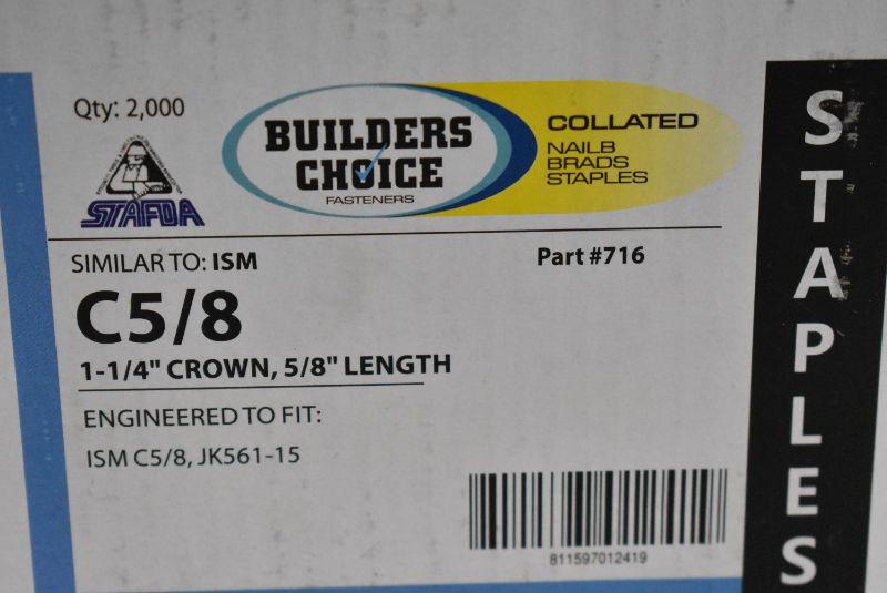 Builders Choice K-C-5/8 2M Carton Closing Staple w/1.25" Crown, Box 2000 - New