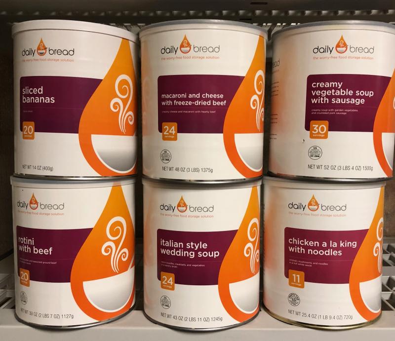 The 'worry free dry food solution'...Daily Bread...Lot of six(6) large containers...variety...from soup to entree in 48 ounce size containers...