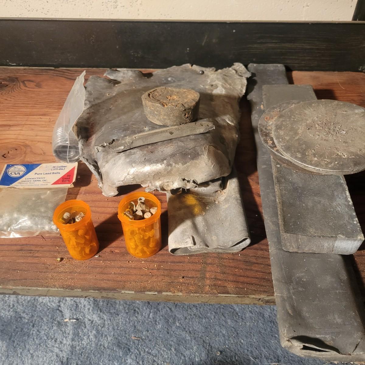 A collection of bulk lead pieces. All of the pieces fit in a milk box, but weighs approximately 60 or more pounds. Local pickup only