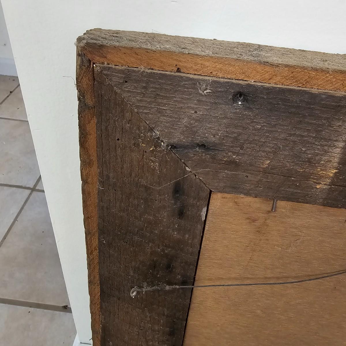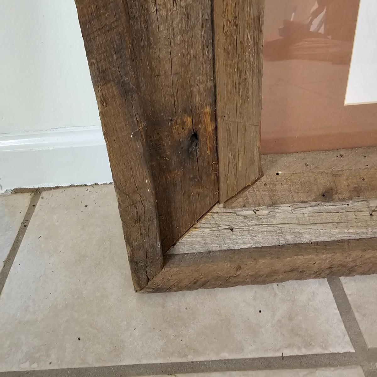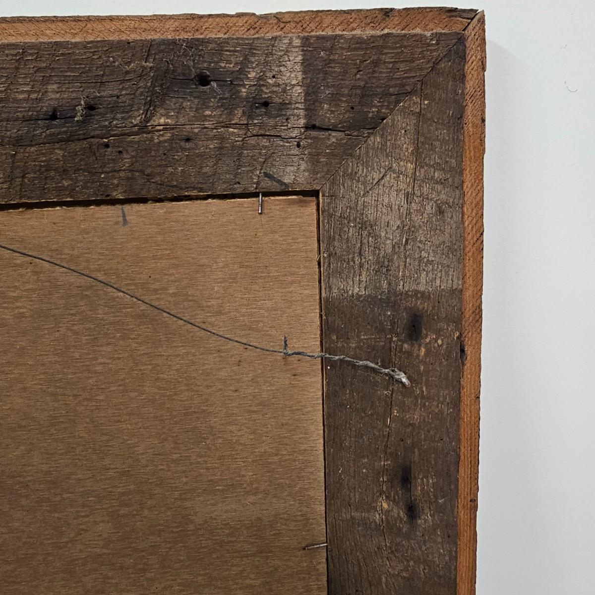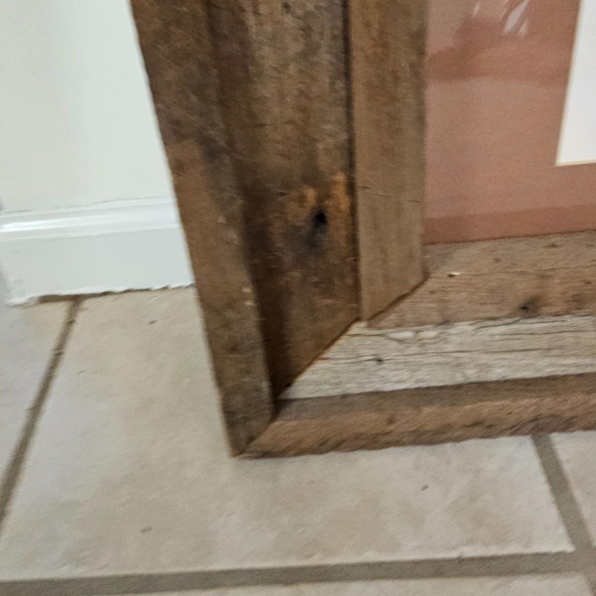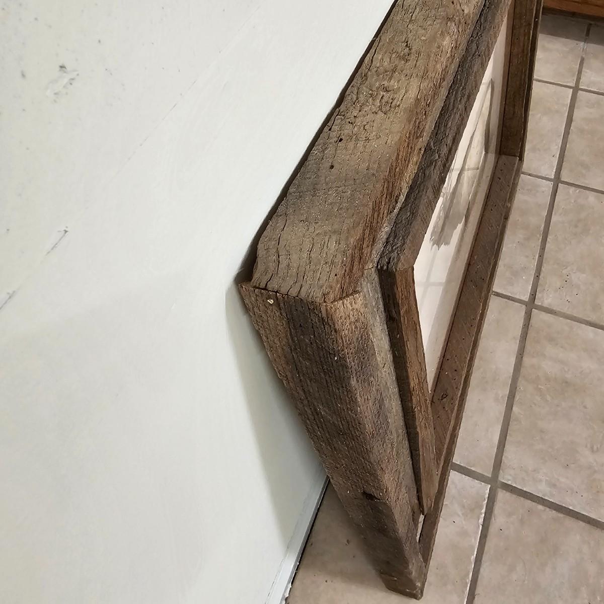 A sepia toned print of a trumpeting bull elk. Framed in rustic barn wood and under glass, this Frame measures 33" x 26"H. Wire hanger on back, and some discoloring in background of print. See photos for details. Shipping available. Shipping can be costly. We suggest contacting our preferred local shipping provider, Postage Express, with dimensions and getting an estimate before bidding: (828) 670-5501 or postageexpress@yahoo.com.
