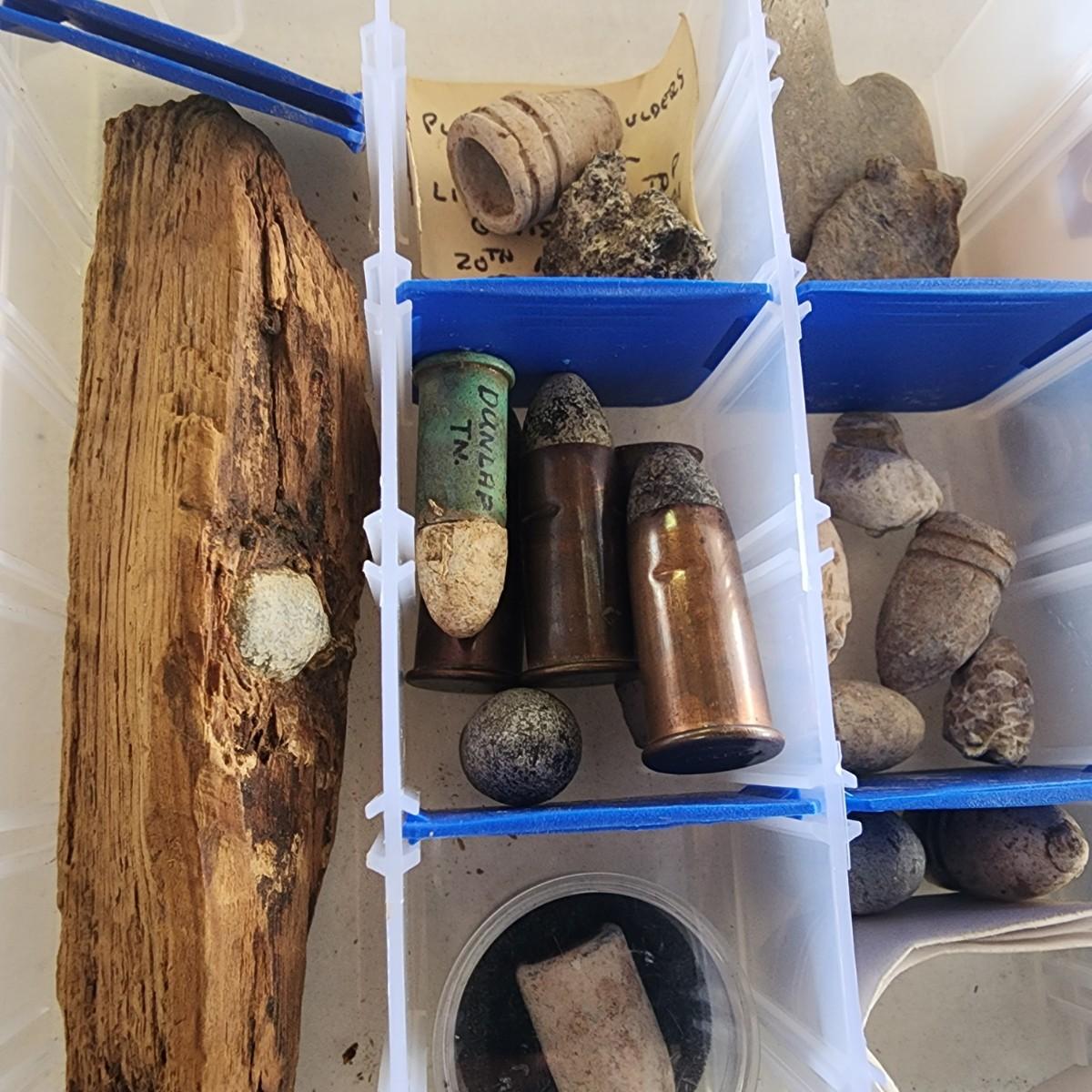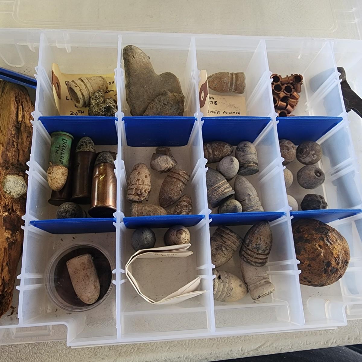 This ia great collection of bullets, balls and small arms rounds from the Civil War. Include two bullet molds.