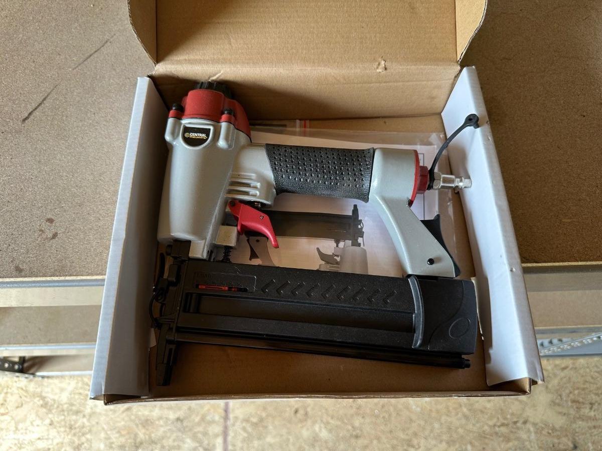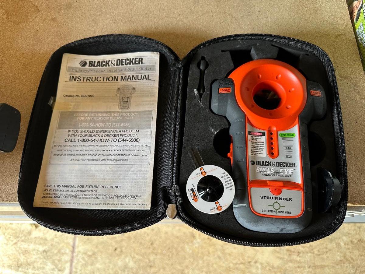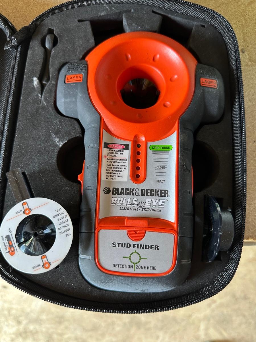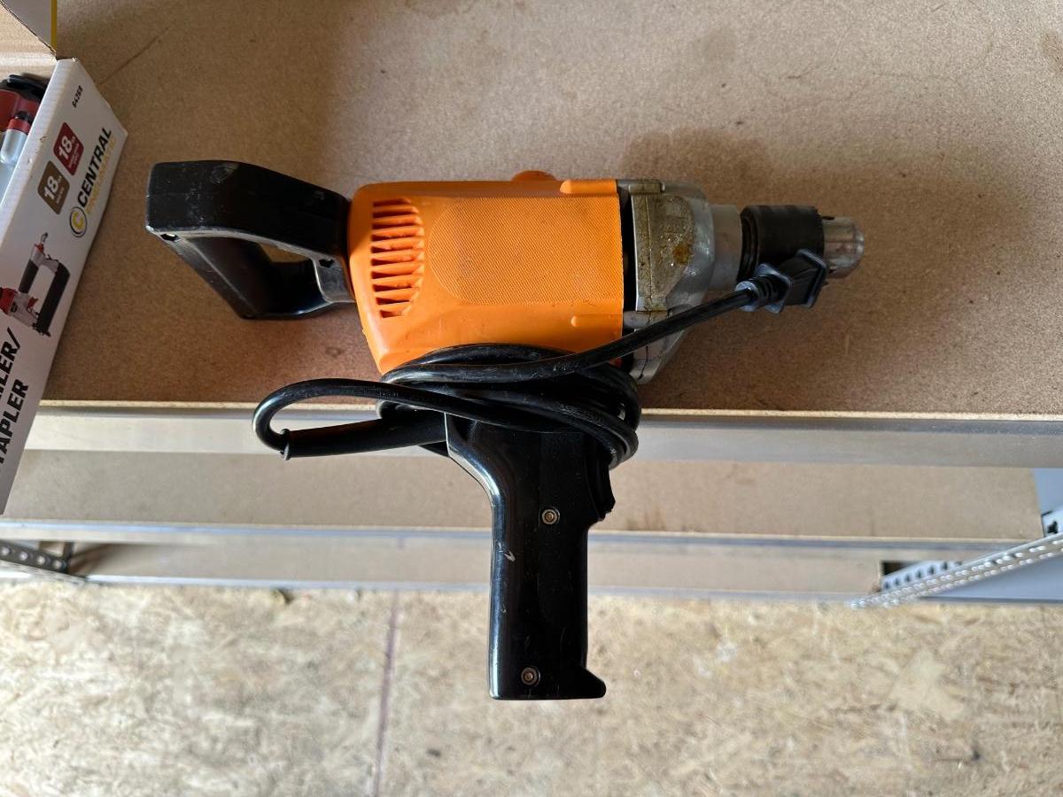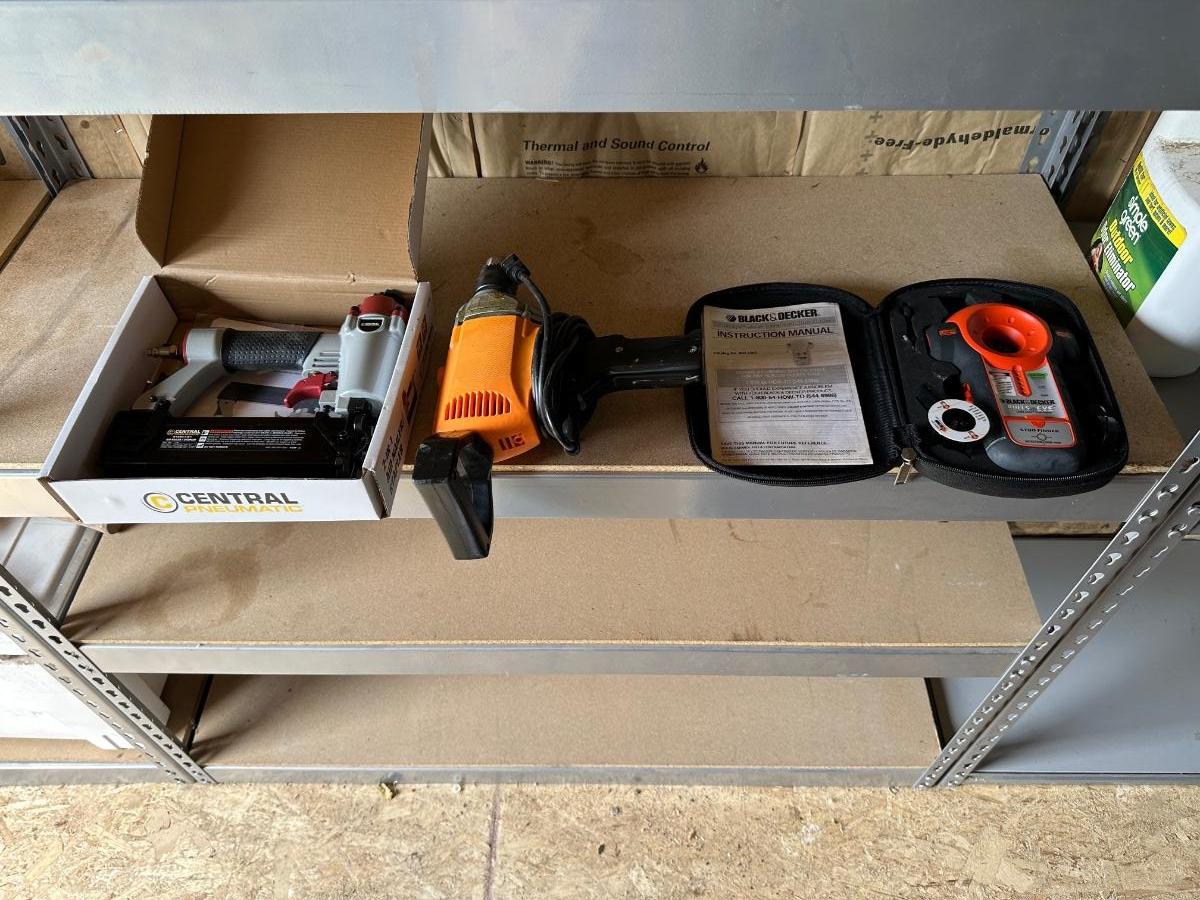 BULLS EYE STUD FINDER, AIR NAILER/STAPLER AND A CORDED POWER DRILL