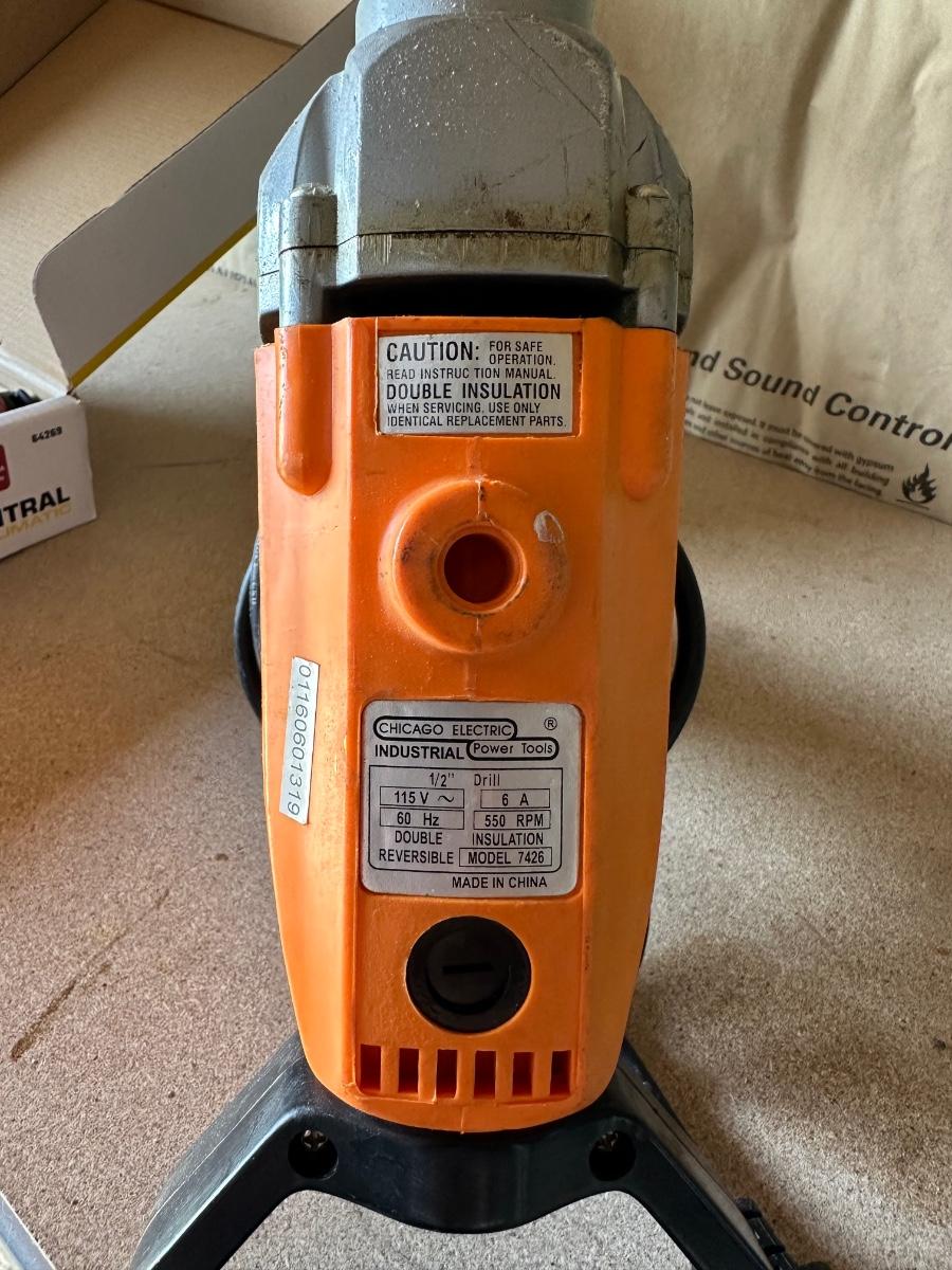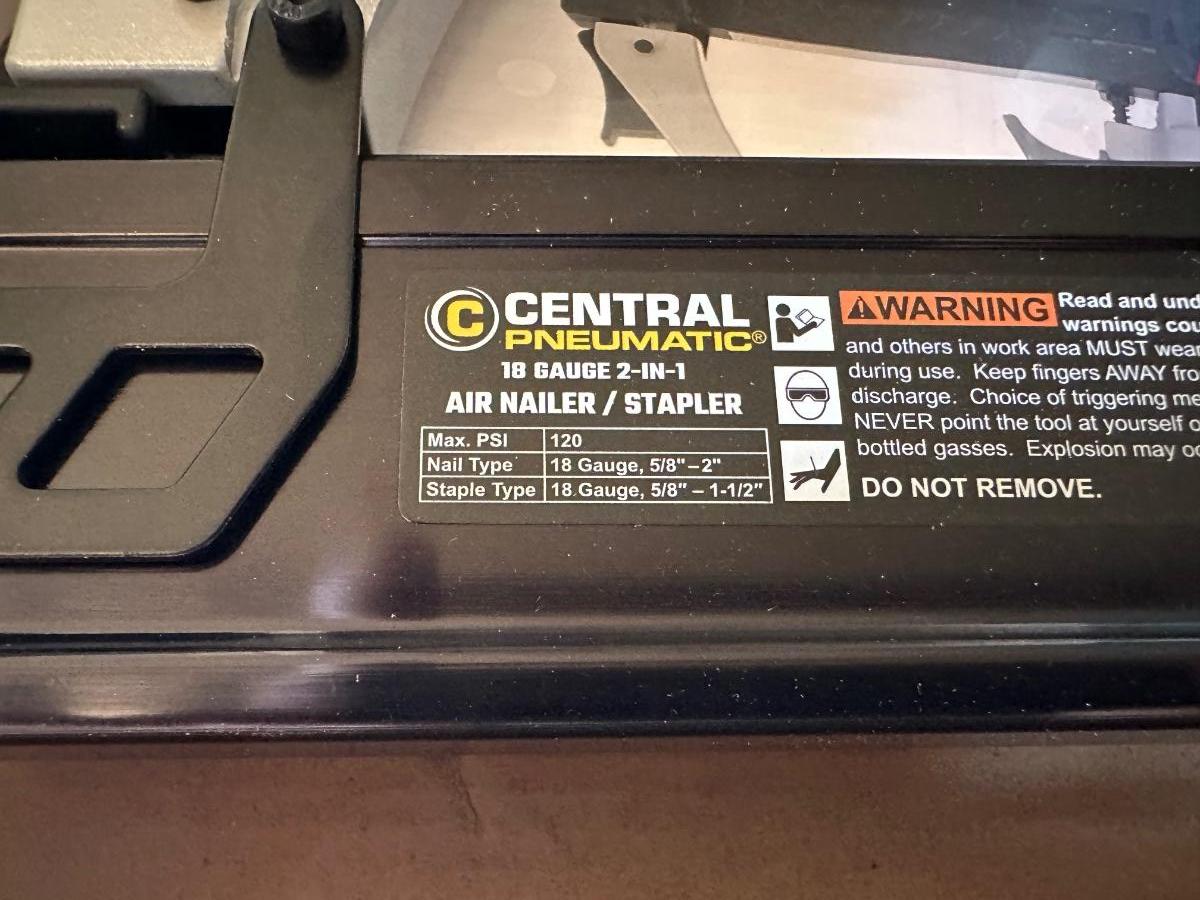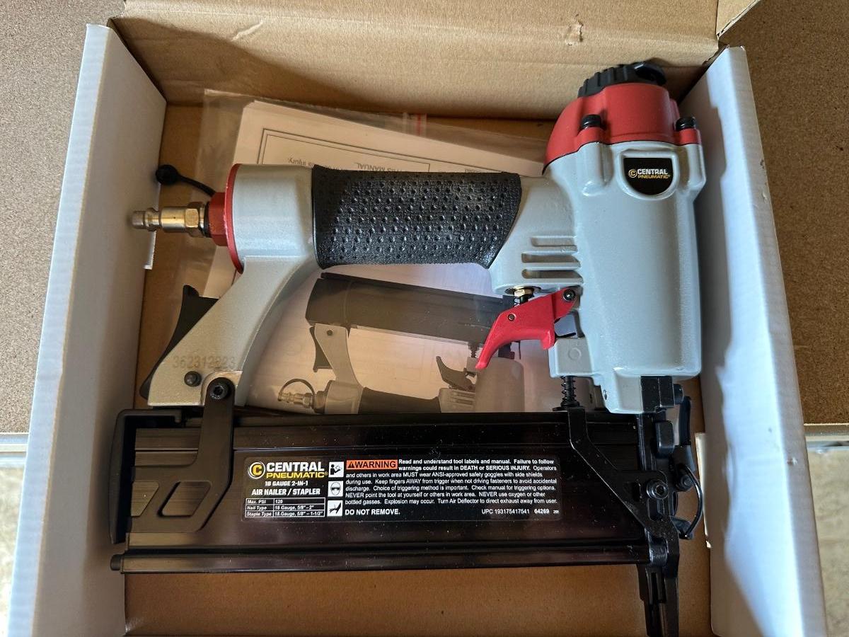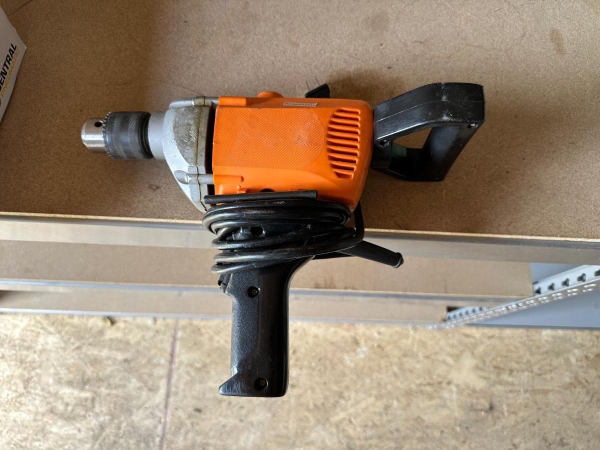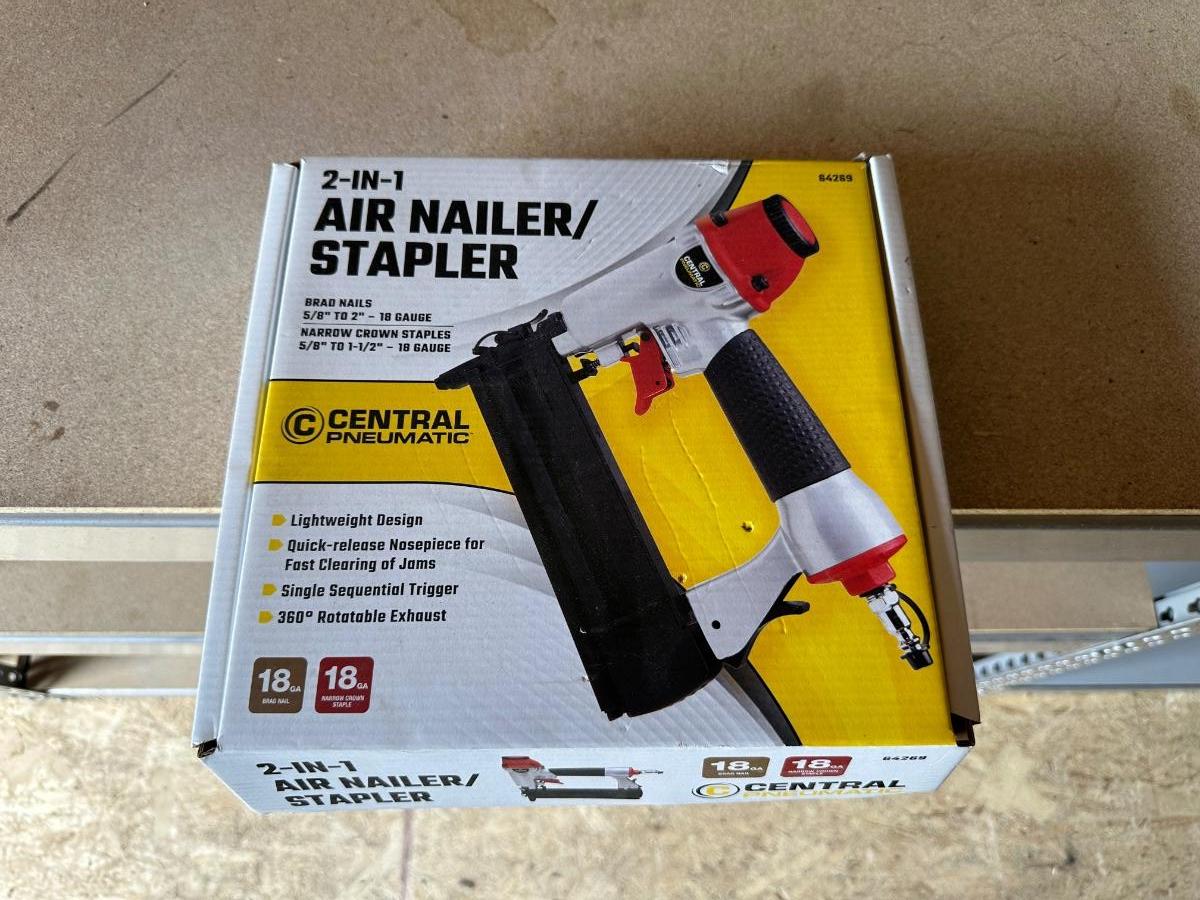 BULLS EYE STUD FINDER, AIR NAILER/STAPLER AND A CORDED POWER DRILL