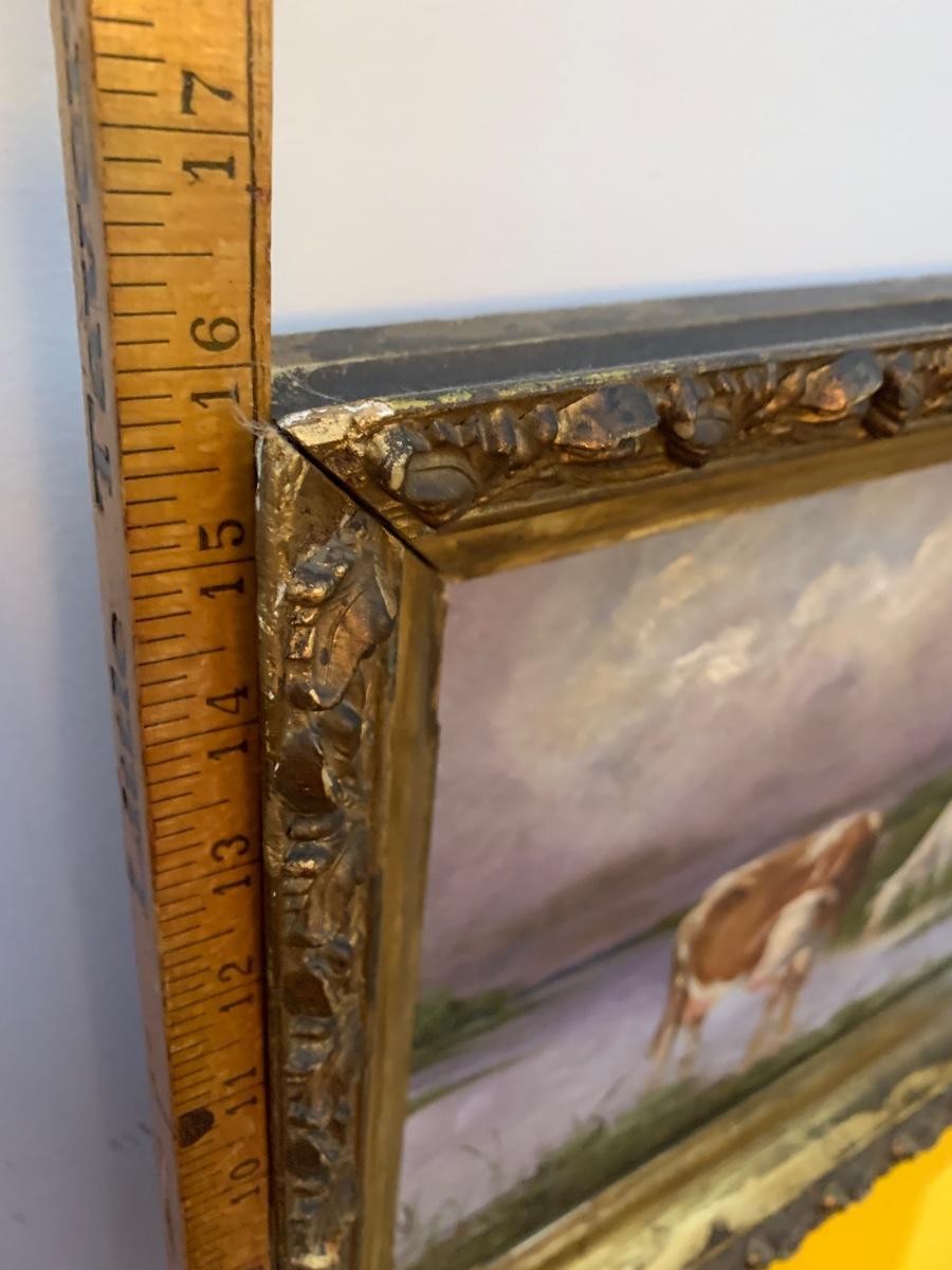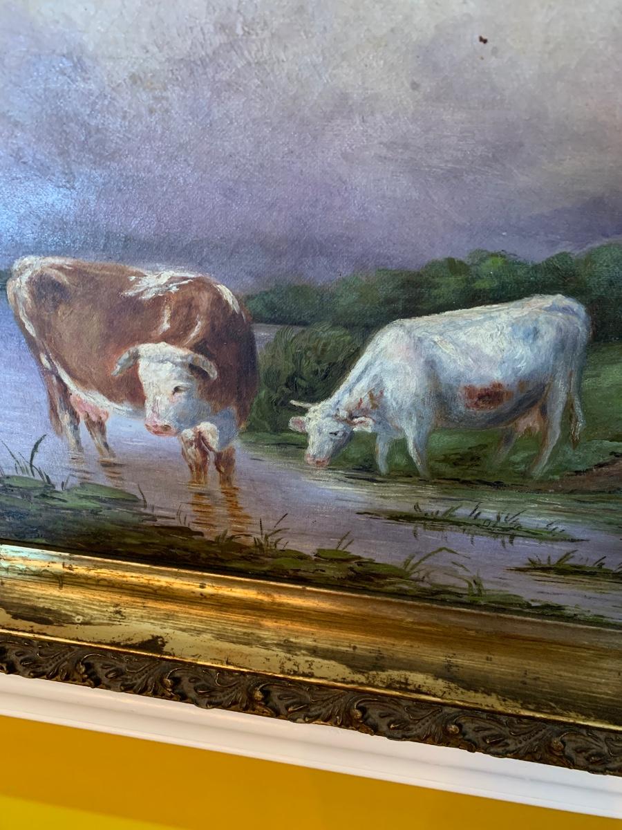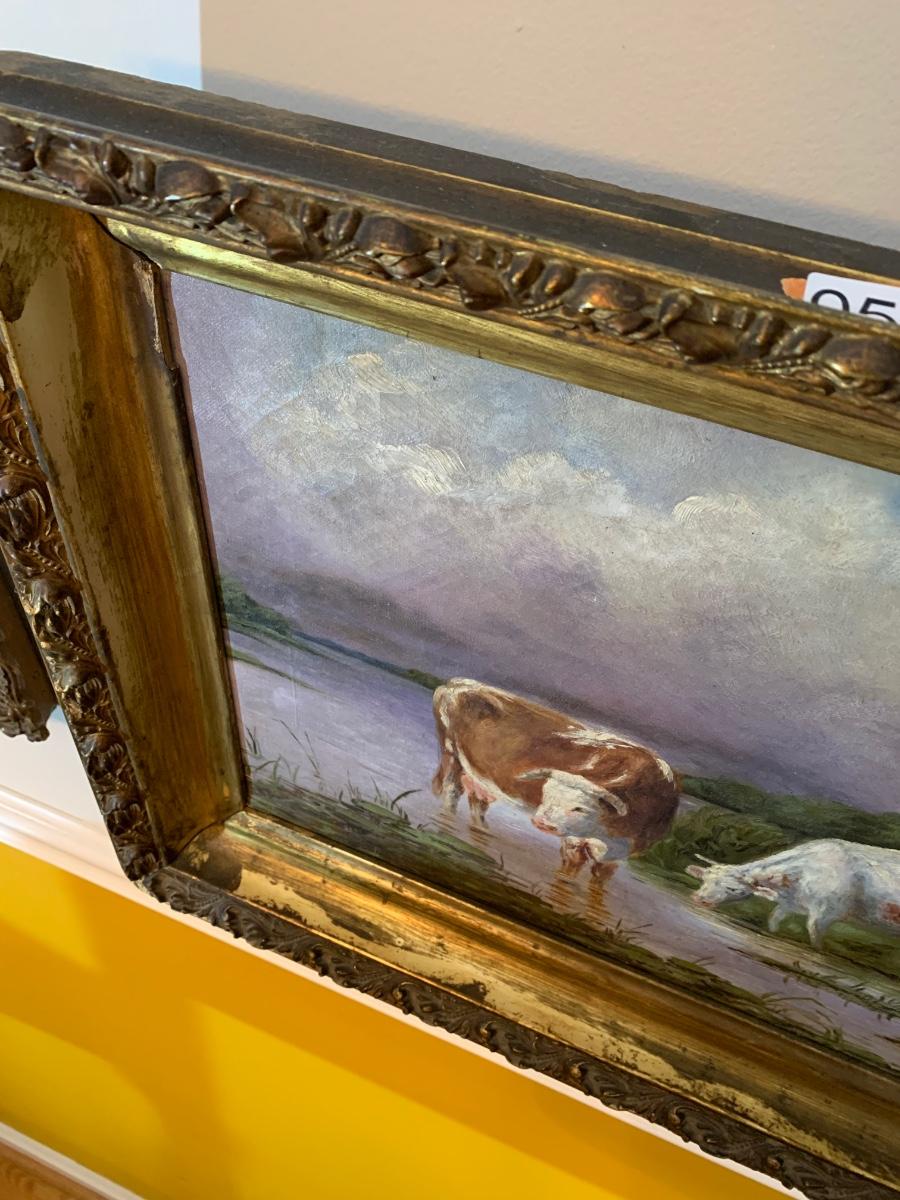 Bulls In Stream Oil On Canvas Gold Gilt Frame