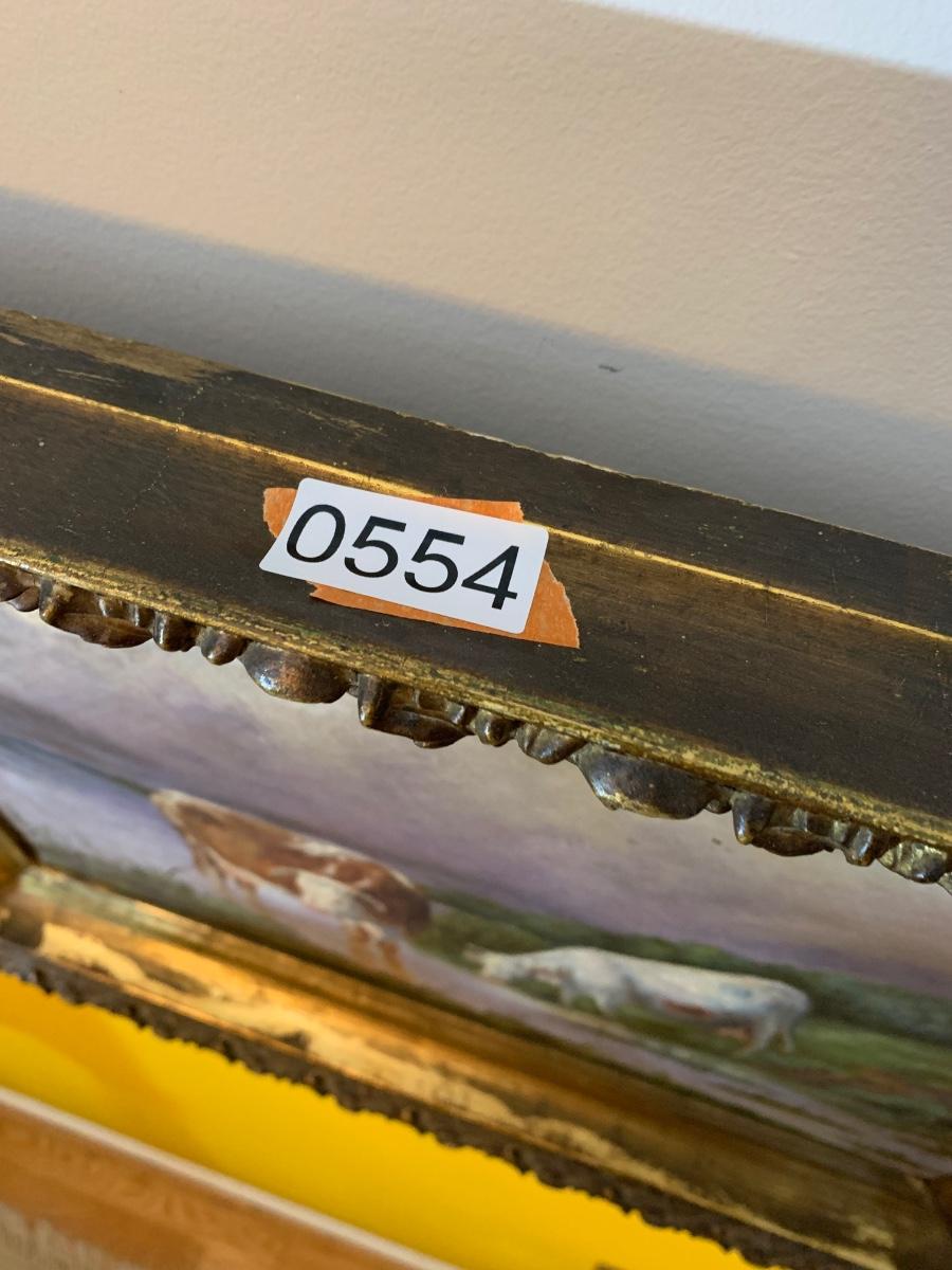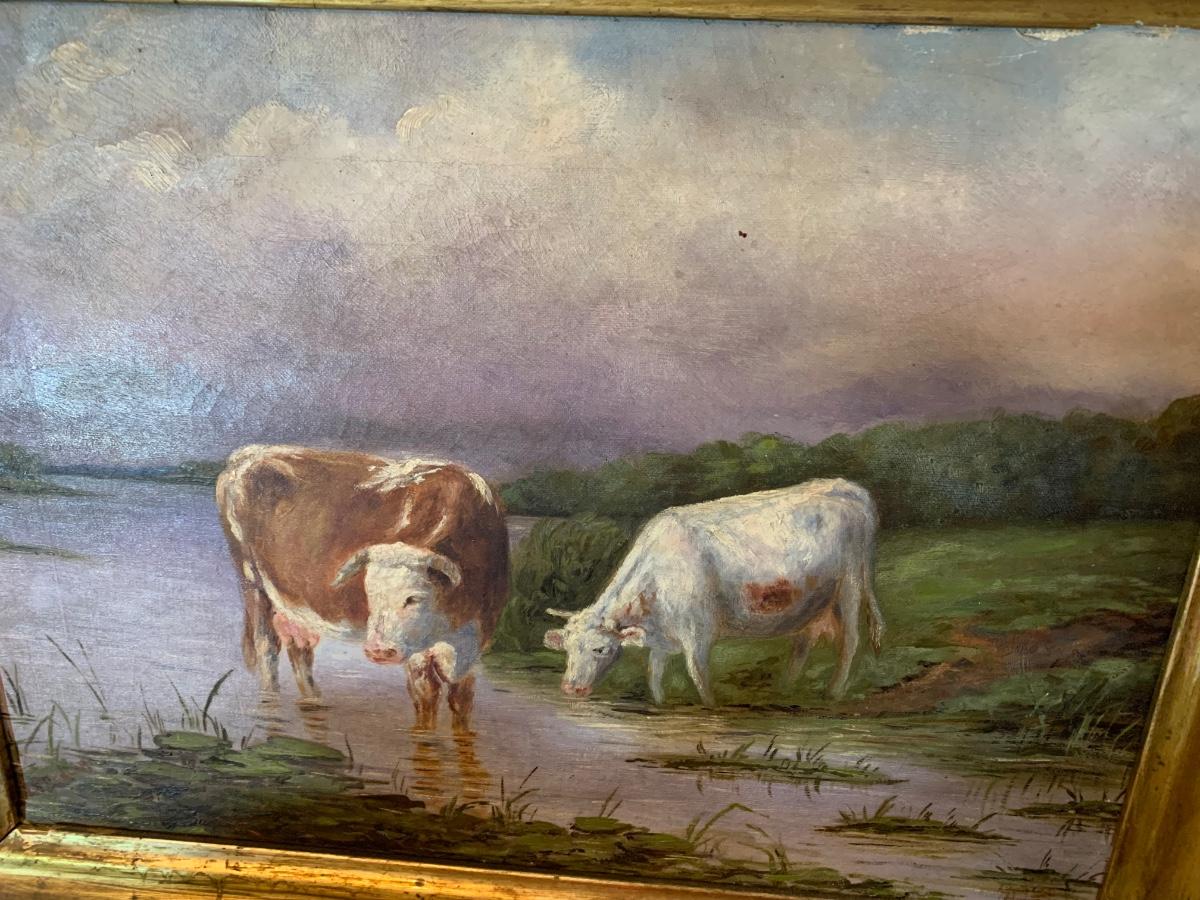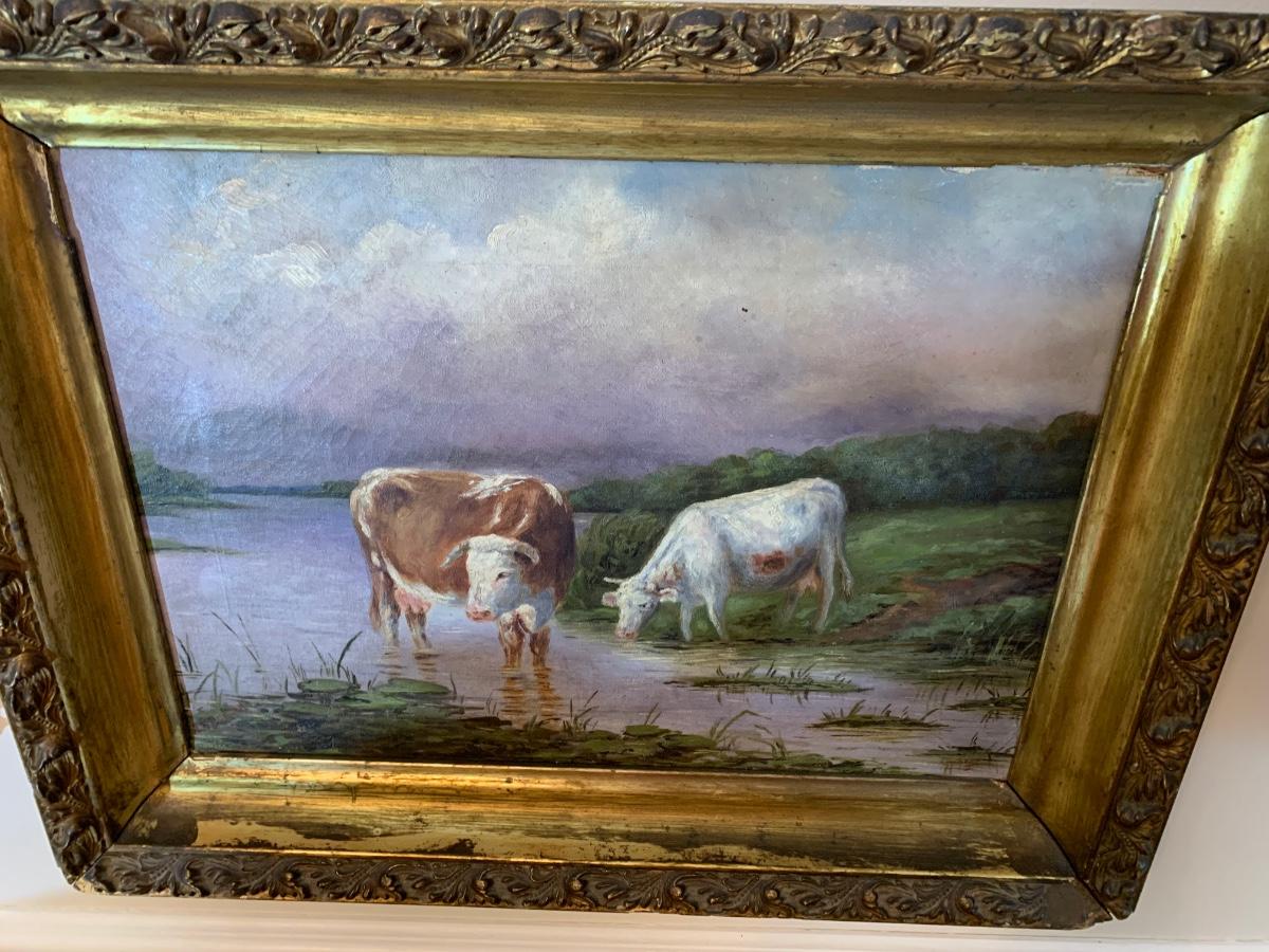 Bulls In Stream Oil On Canvas Gold Gilt Frame