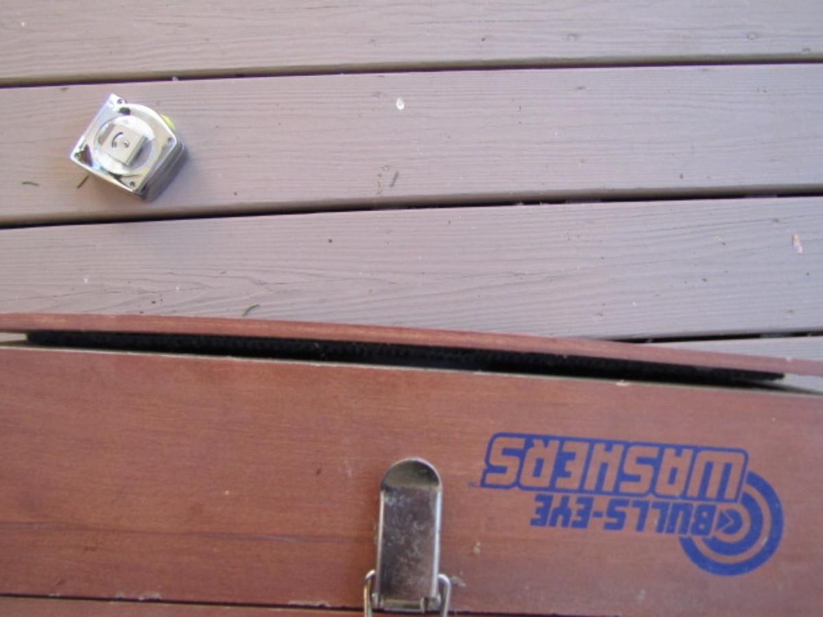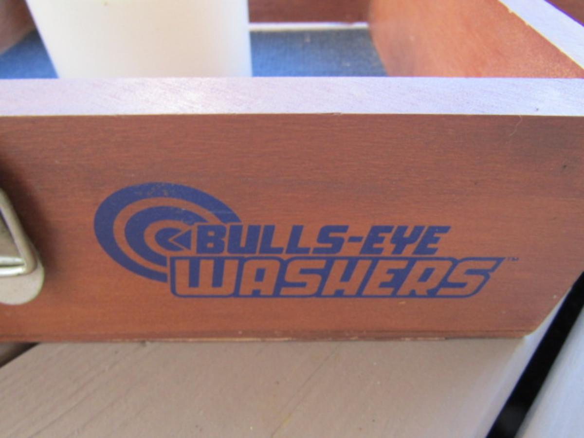 Bulls-Eye Washers Tossing Game. Please see all pictures: some de-lamination on box.