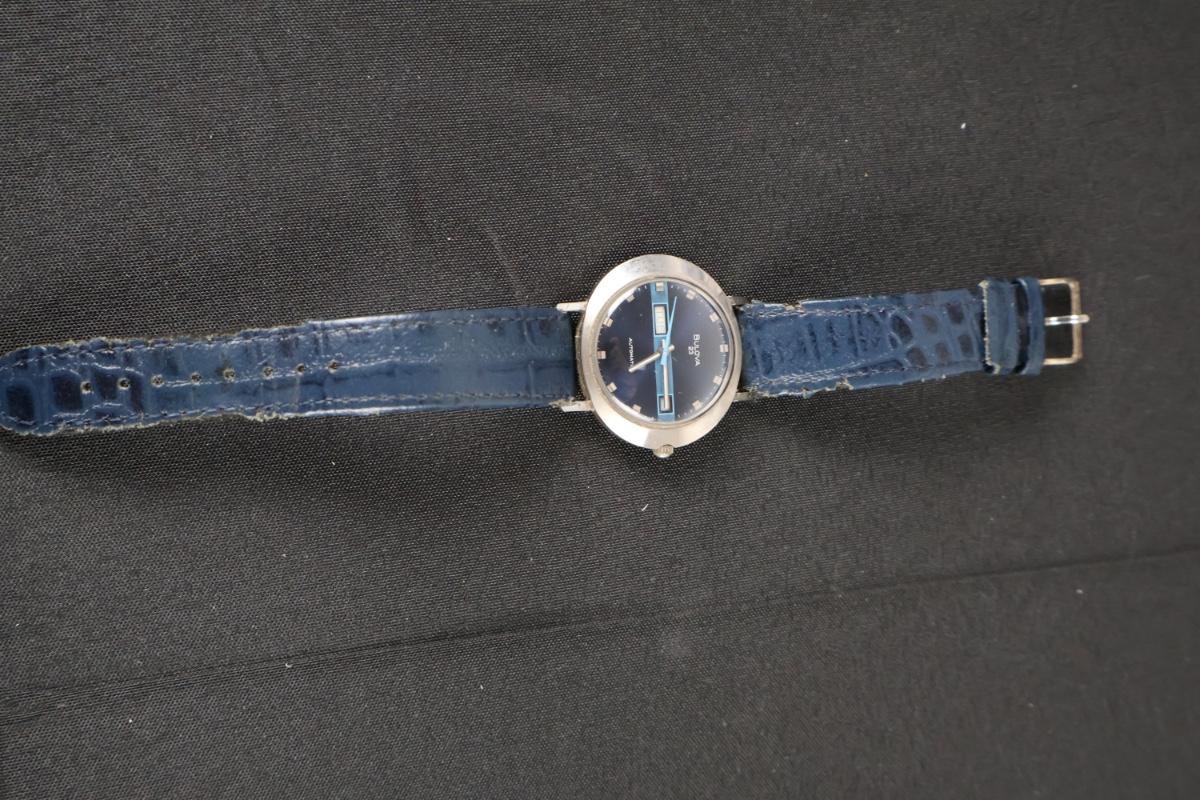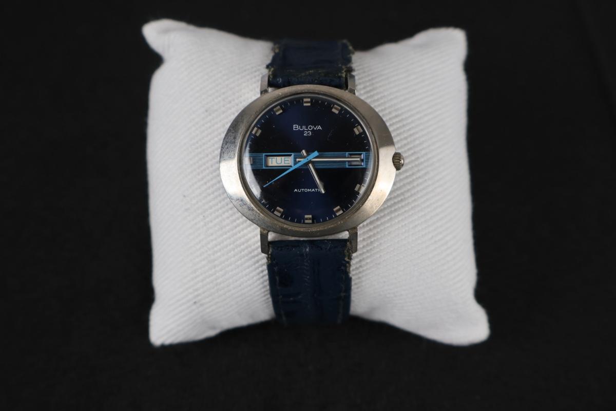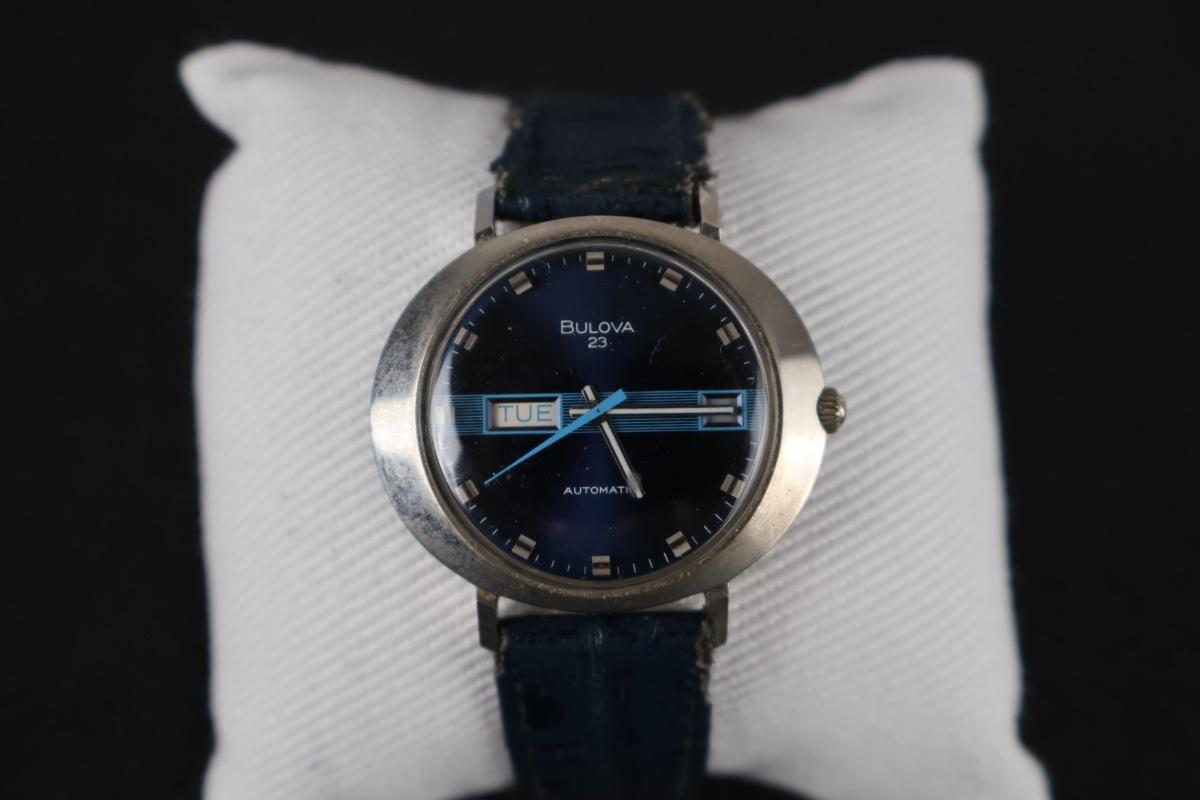 Bulova 23 Men's Automatic SS Oval Watch 11AOACB Blue Dial Day Date
