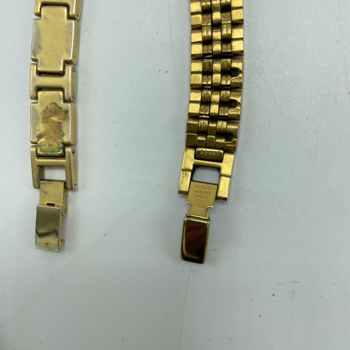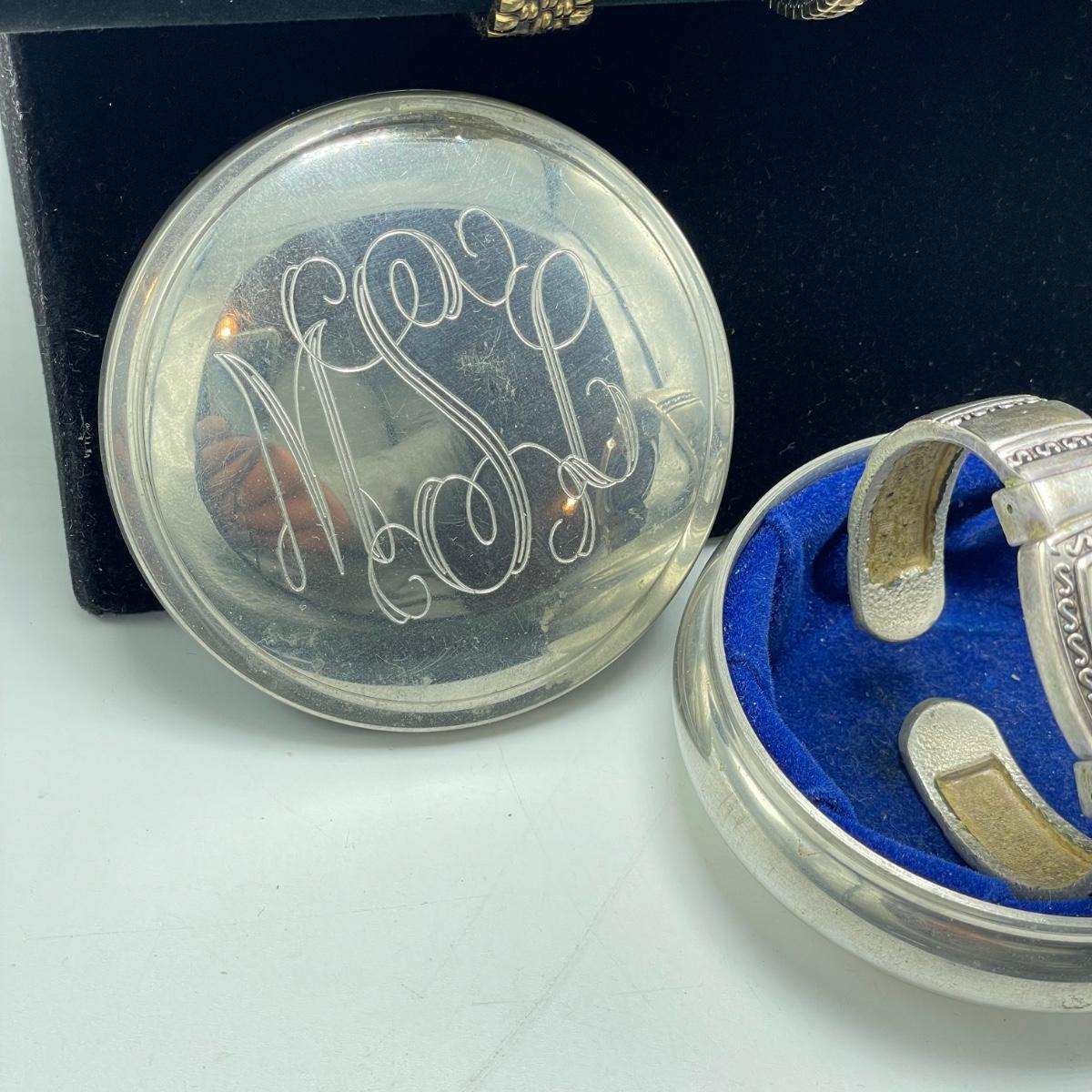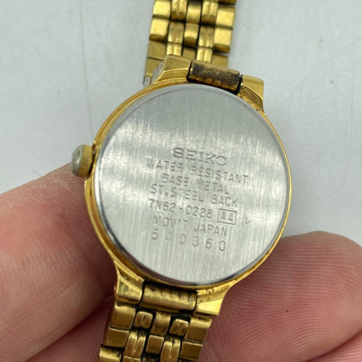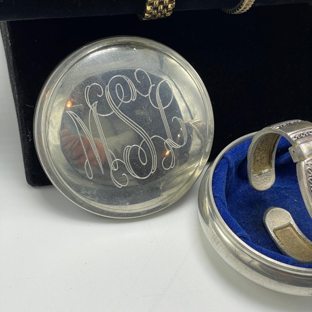 Vintage Bulova watch with Speidel elastic band along with Eikon, Seiko, Timex and Geneva watch with pewter case. Case has an etched monogram. The watches all appear in fine condition, but we were unable to test as likely batteries need replaced. See images. Shipping available.