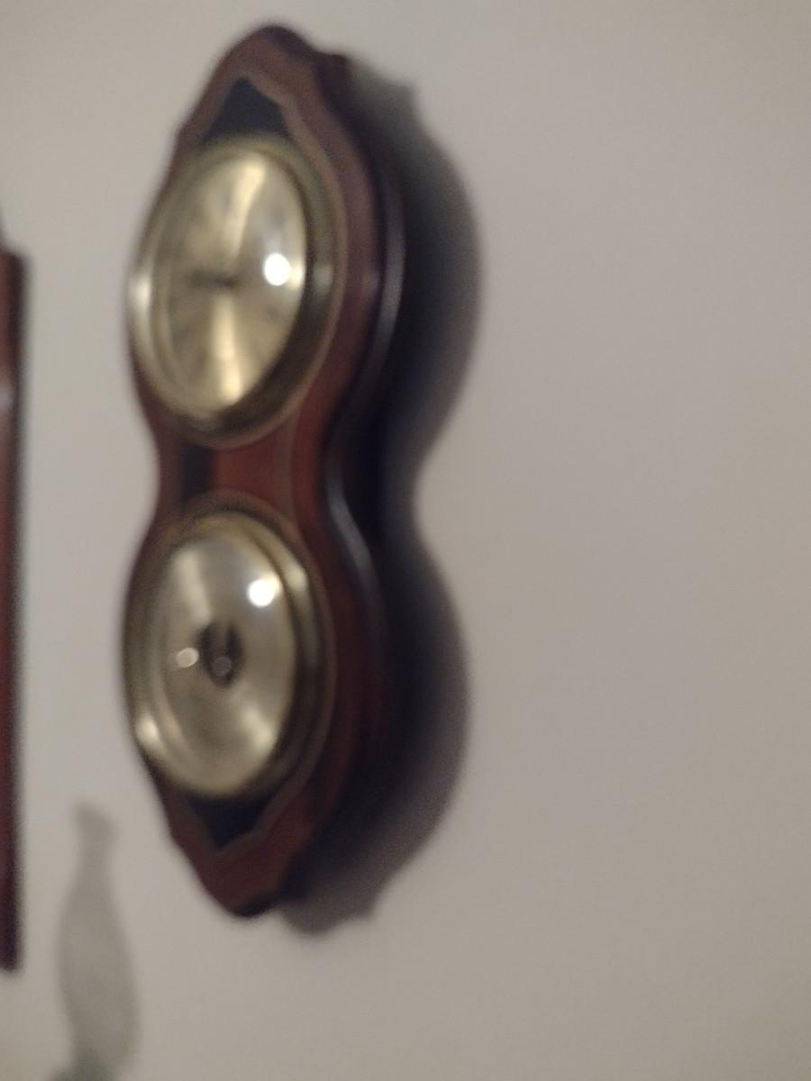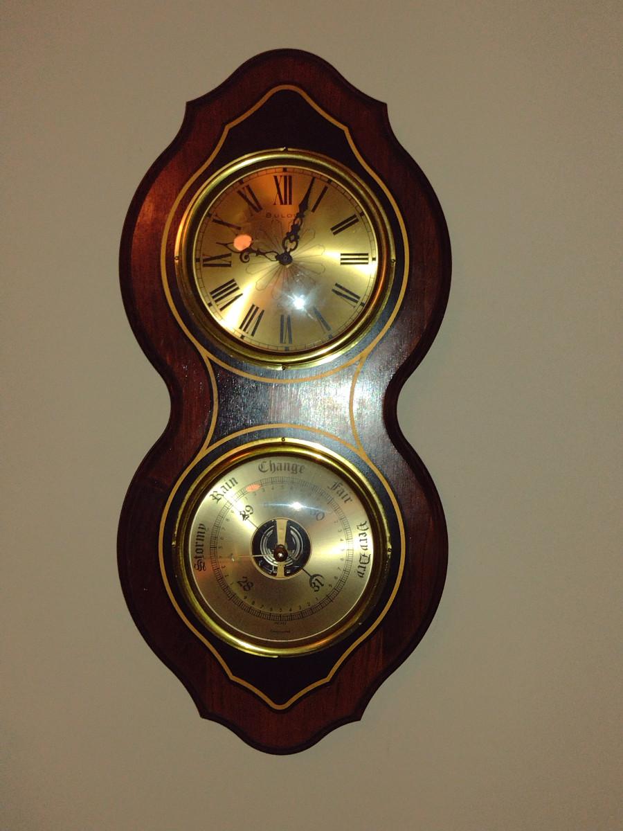 Bulova Wood Case Wall Clock and Barometer- Made in England- Approx 22 1/2" x 11"