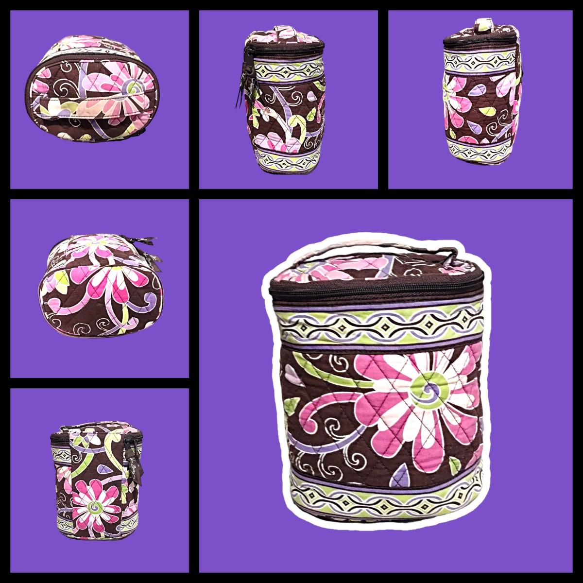- Vera Bradley Brown, Puirple, Lime Green & Pink Quilted Bucket Bag - 1 Zippered Interior Compartmant w/ 2 Open