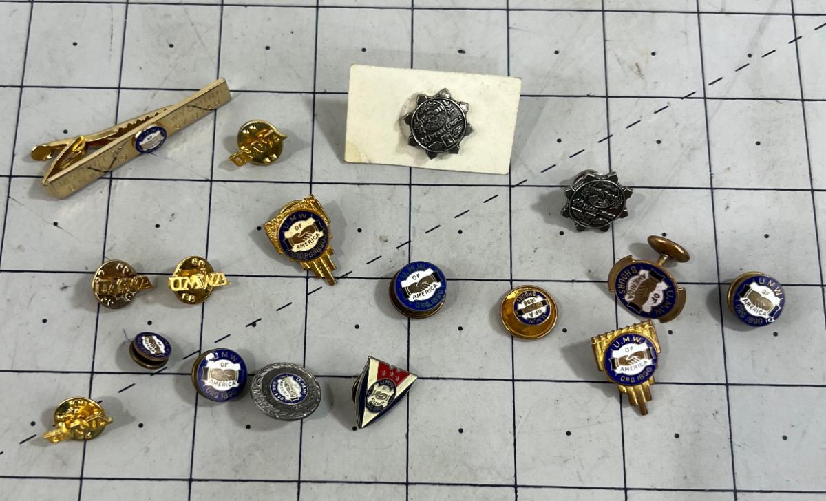 Bunch of Tie Tacks and Lapel Pins; United Mine Workers