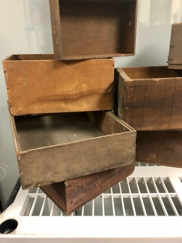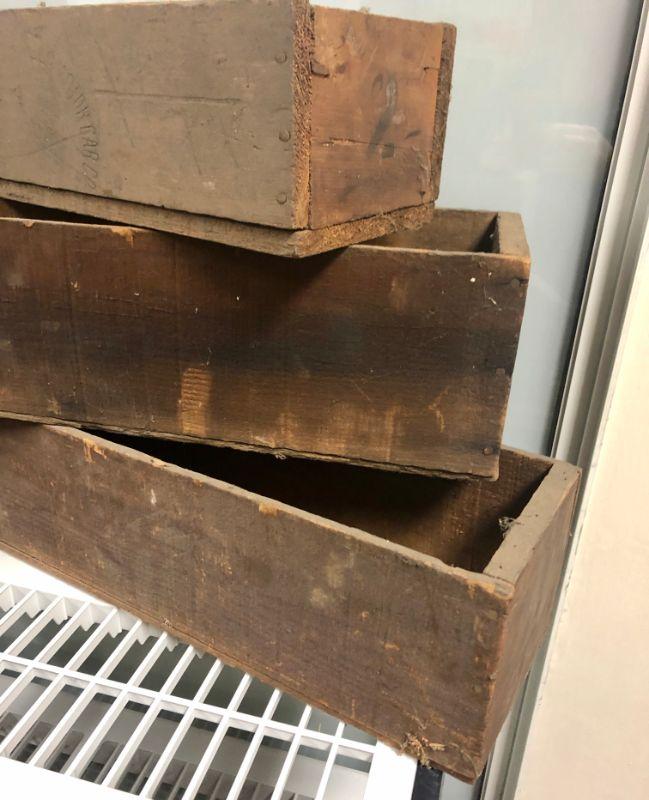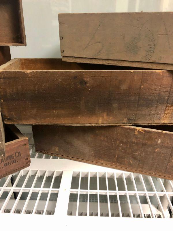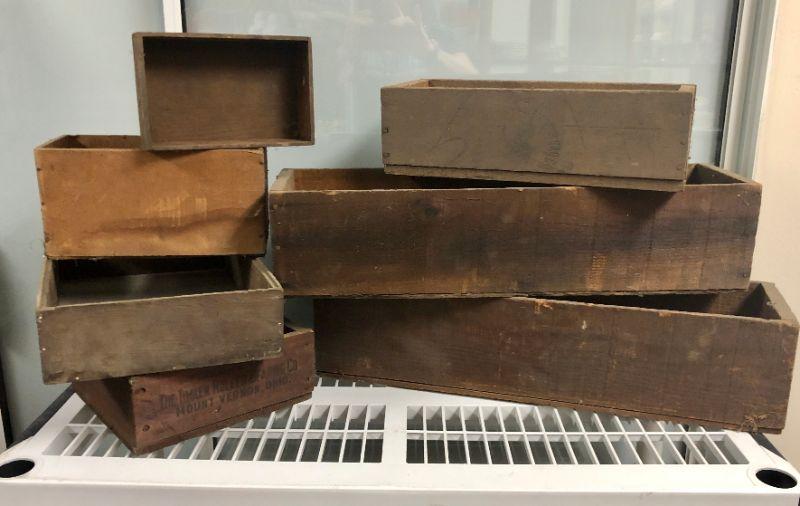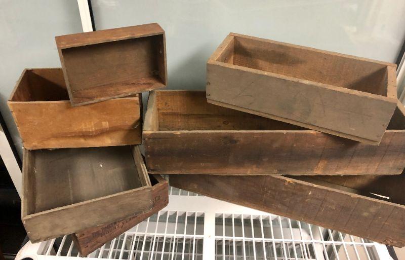 These boxes and crates are old, fragile and perfect for a rustic display