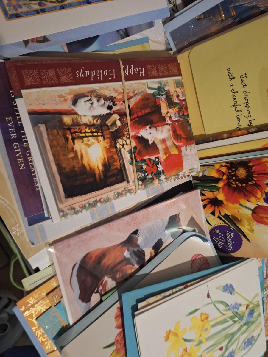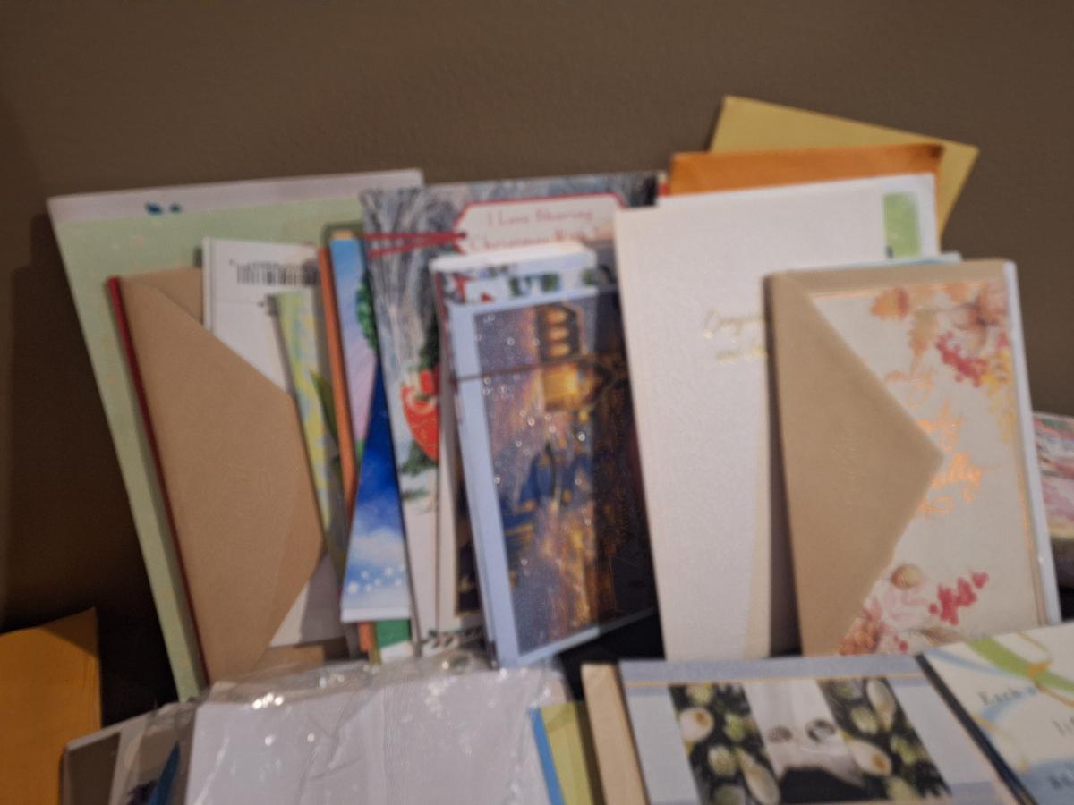 bundle of greeting cards- fills a braums medium grocery bag just over half full (see all photos).