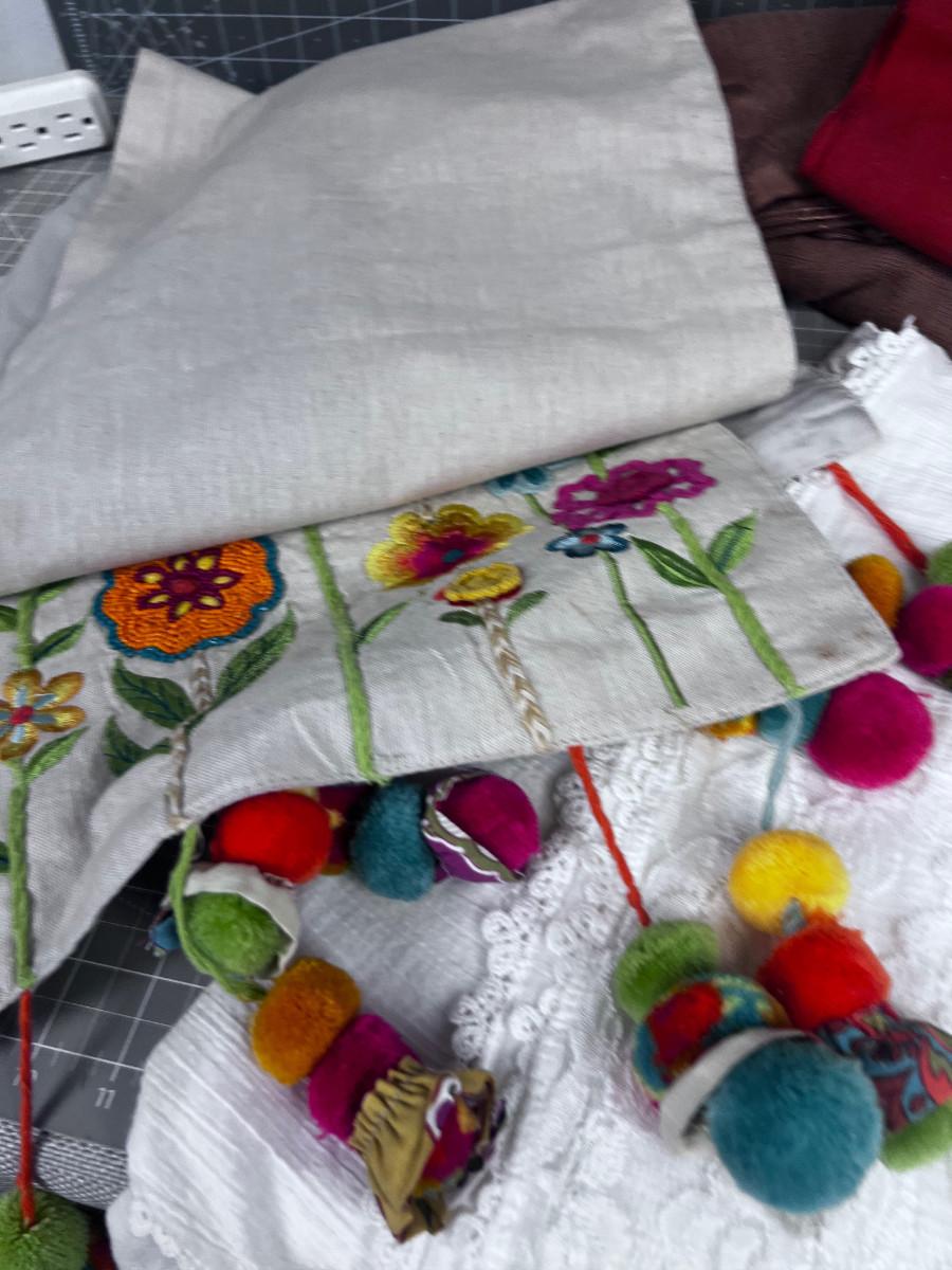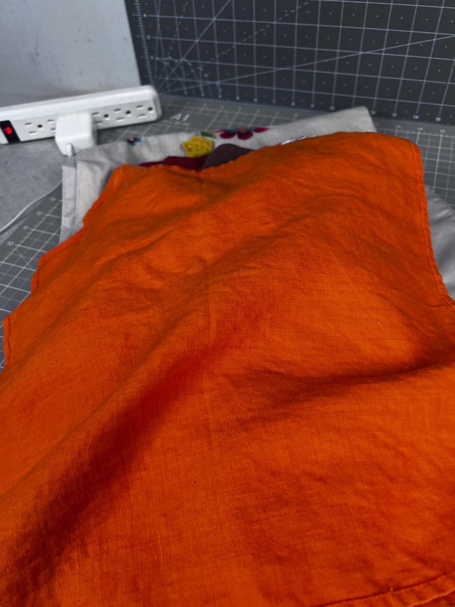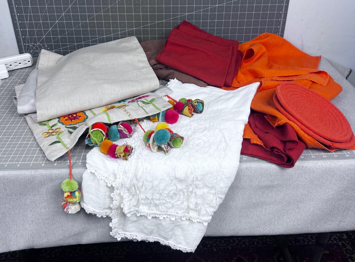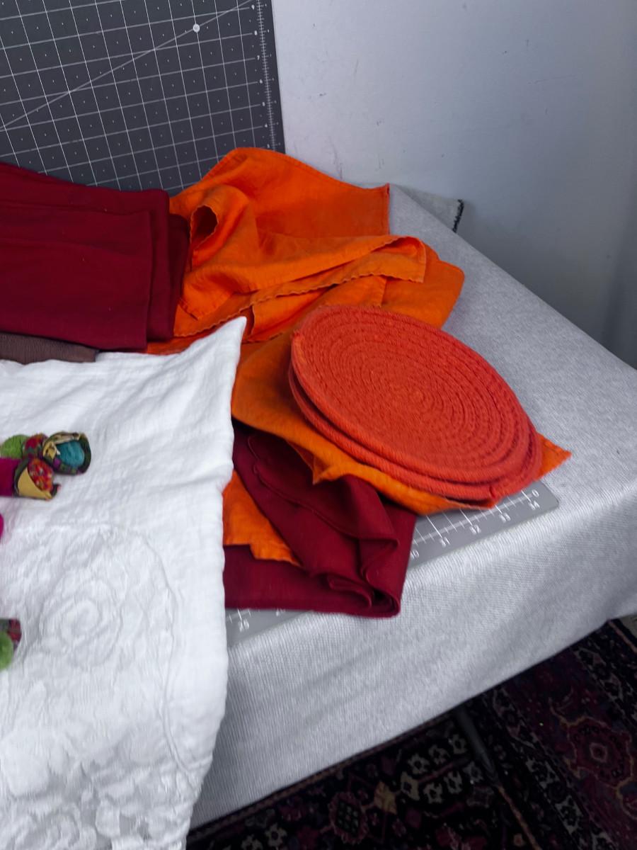 Bundle of Linens; Orange Napkins, Hot Pads Brown Table Cloth and Festive Runner