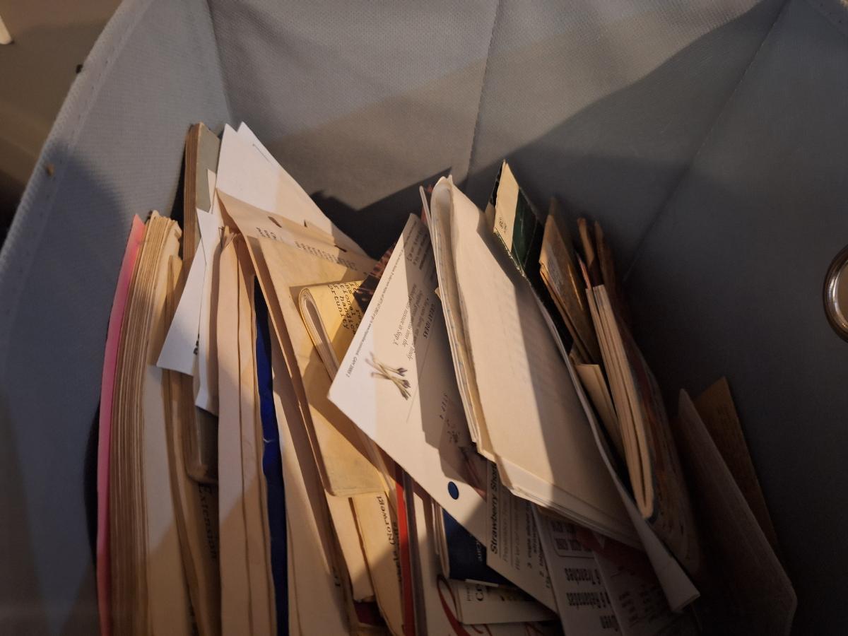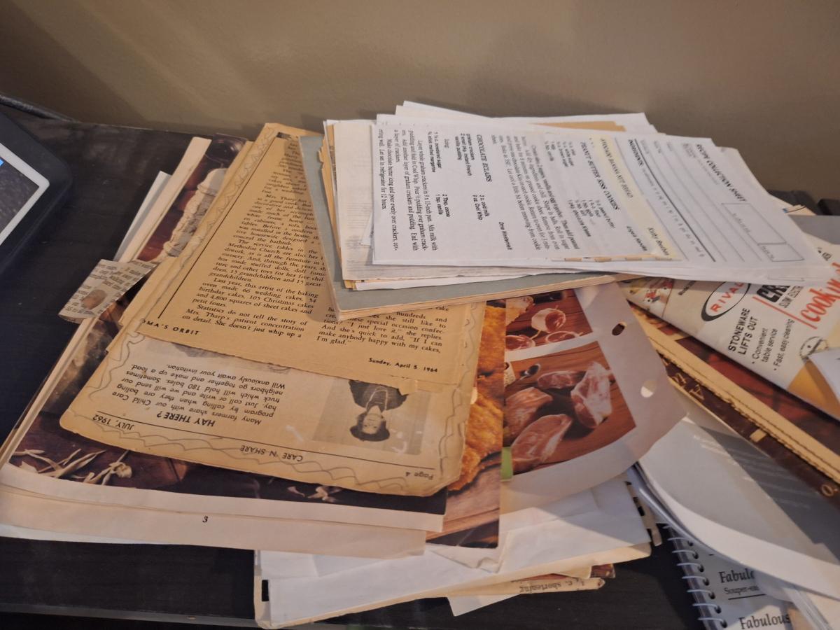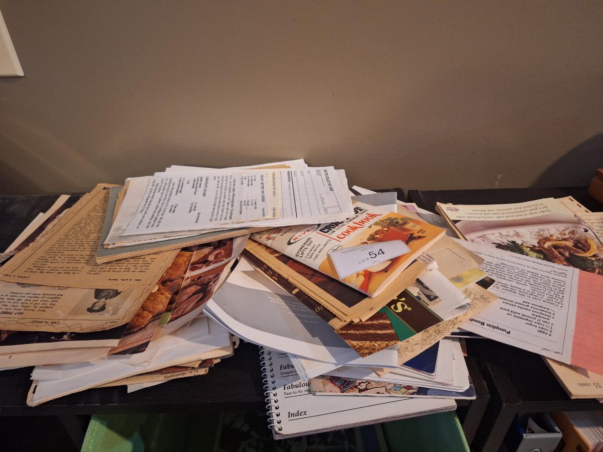 bundle of recipes, clippings, pamplets, hand written etc. just a pile of cooking goodness