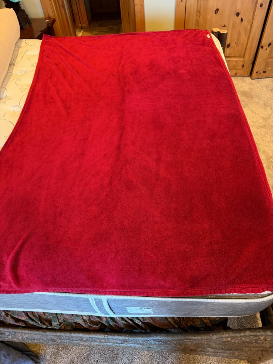 Bundle of three Fleece Throws 1 Red, 1 gray, 1 patterned
