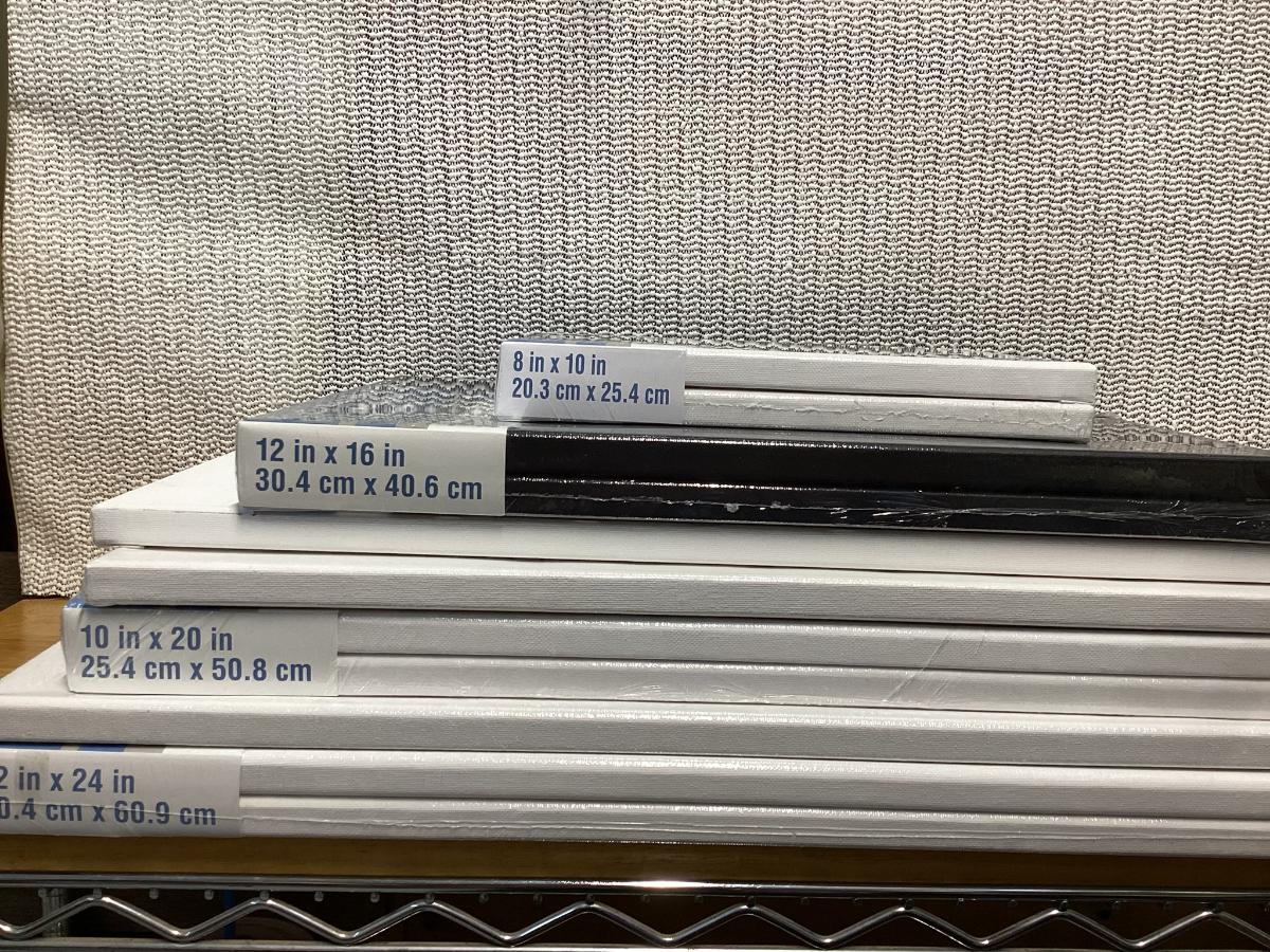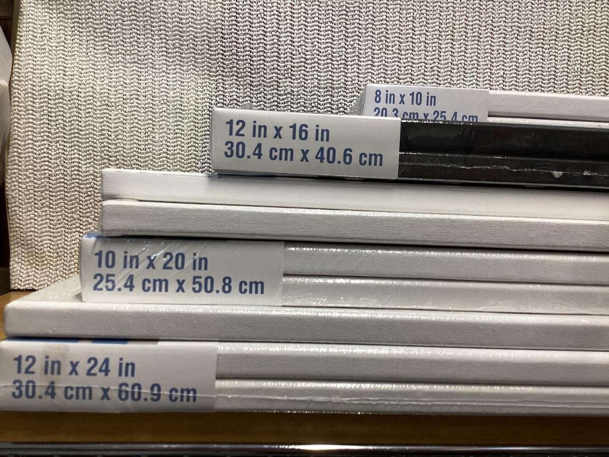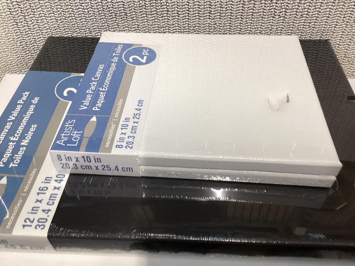 bundle of various sizes of stretched canvases new in packages