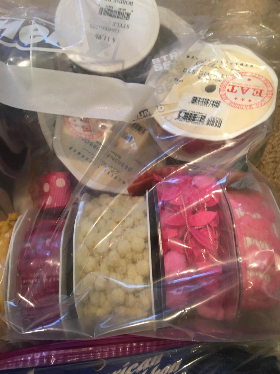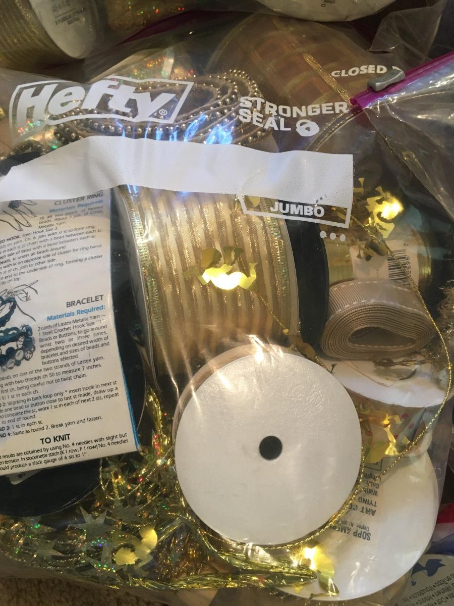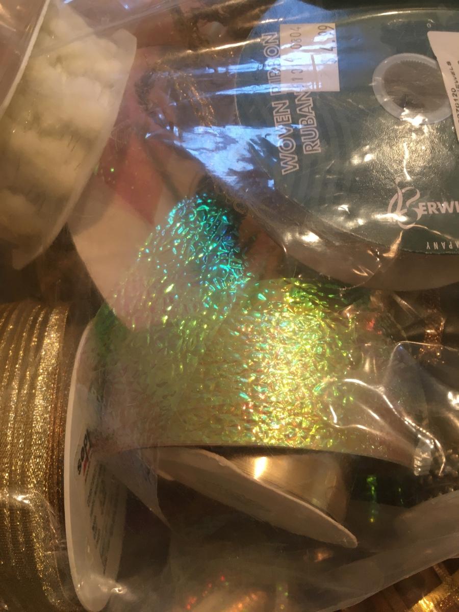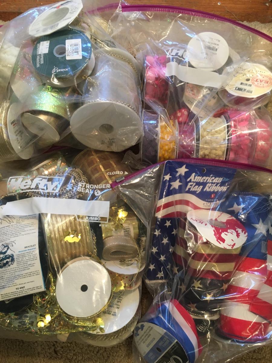 4 giant bags of assorted metallic and cloth ribbons in assorted sizes.