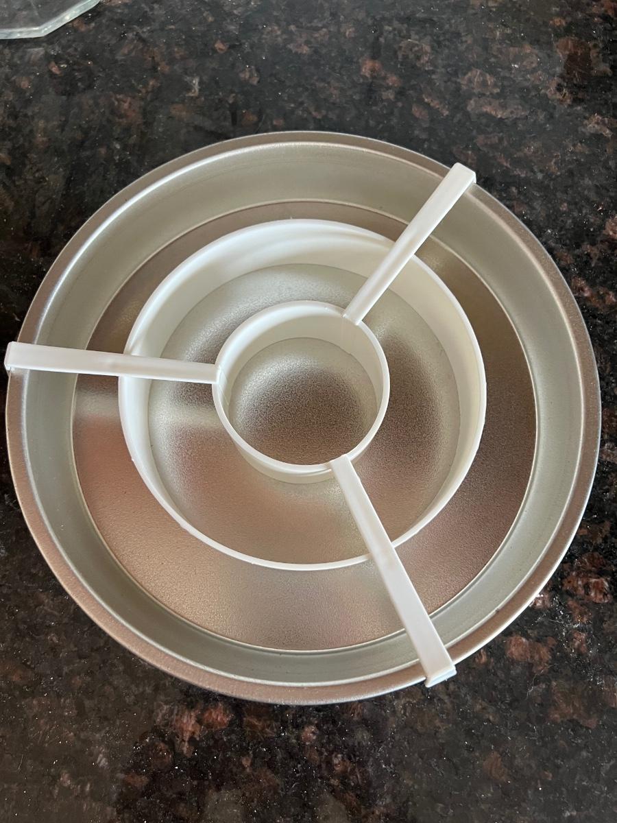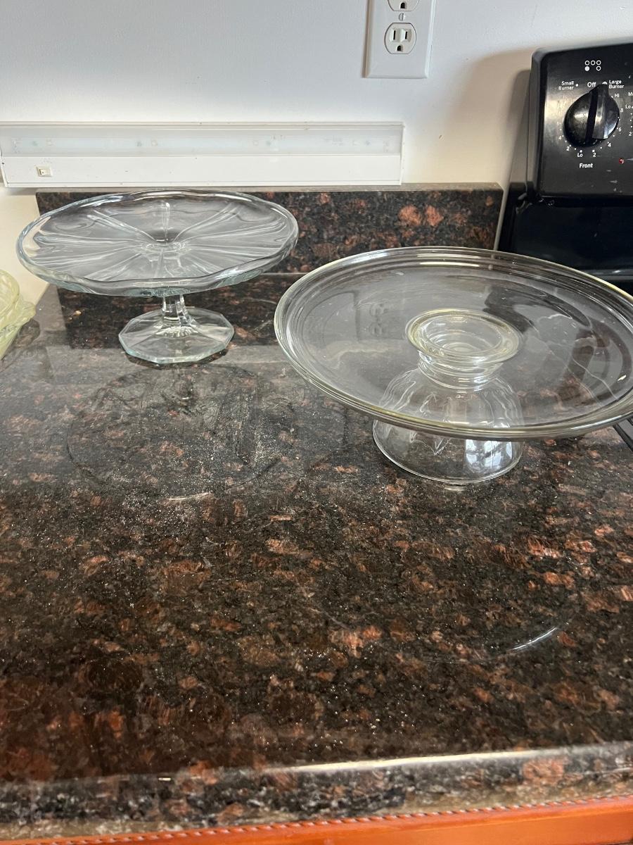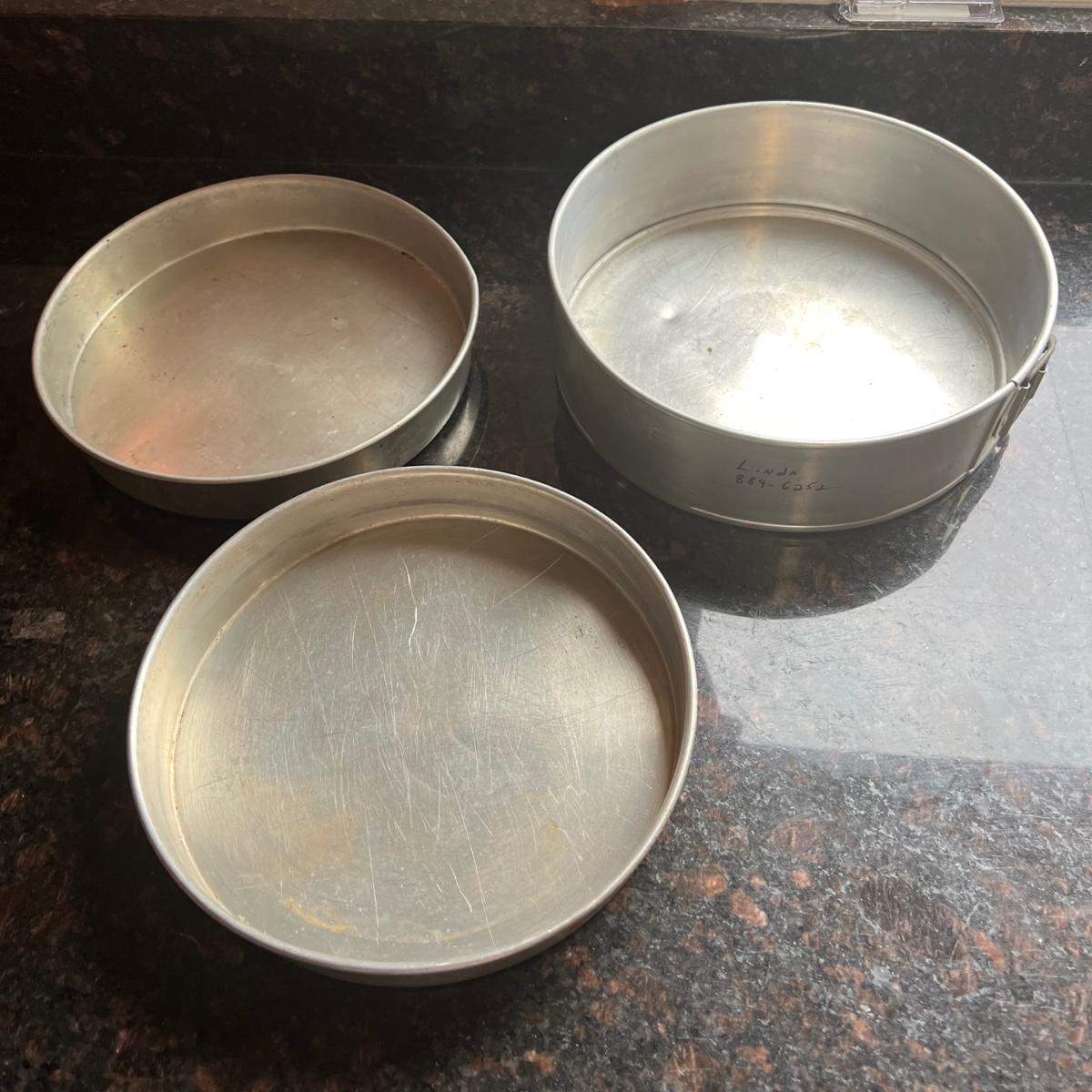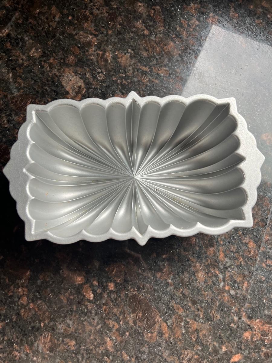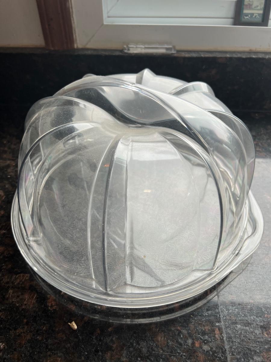 Four large non-stick Bundt pans with different styles, each approximately 10 cups. Two cake serving platters each approximately 10.5”D x 4”H. One large plastic covered cake carrying container that is approximately 11”D x 7”H. A new inbox, Chicago metallic checkerboard cake pan set, and two Nordic Ware mini bundt pan forms, also never been used. A stylish metal loaf pan that's 10” x 5” x 3”H, two metal 9”D cake pans and one 10”D x 3”H spring form pan. Some items appear to be unused and or in original packaging. Please see items for details.