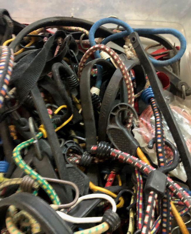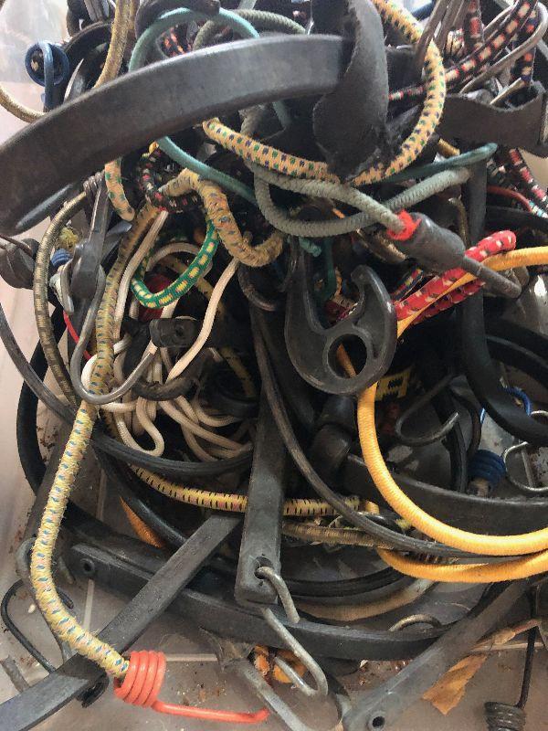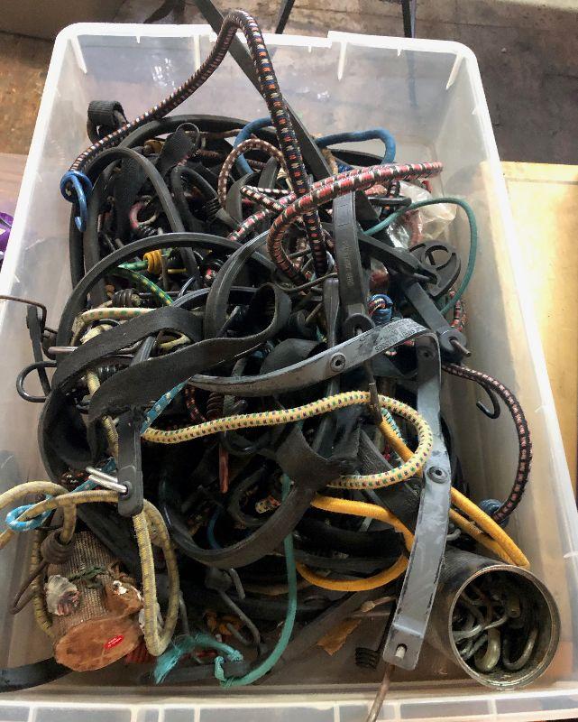 Here's a tub of bungees..tie-downs and straps...wide variety..used...