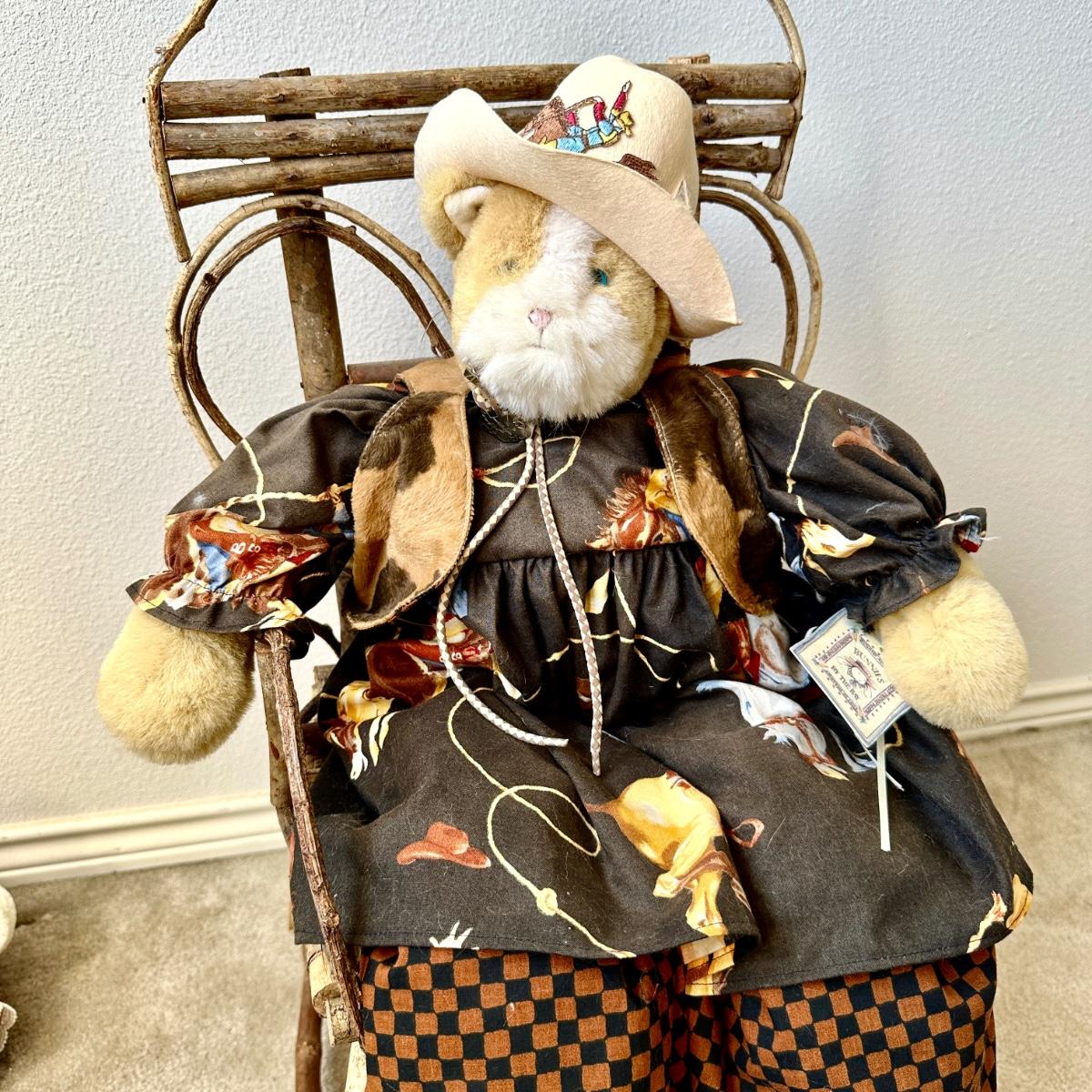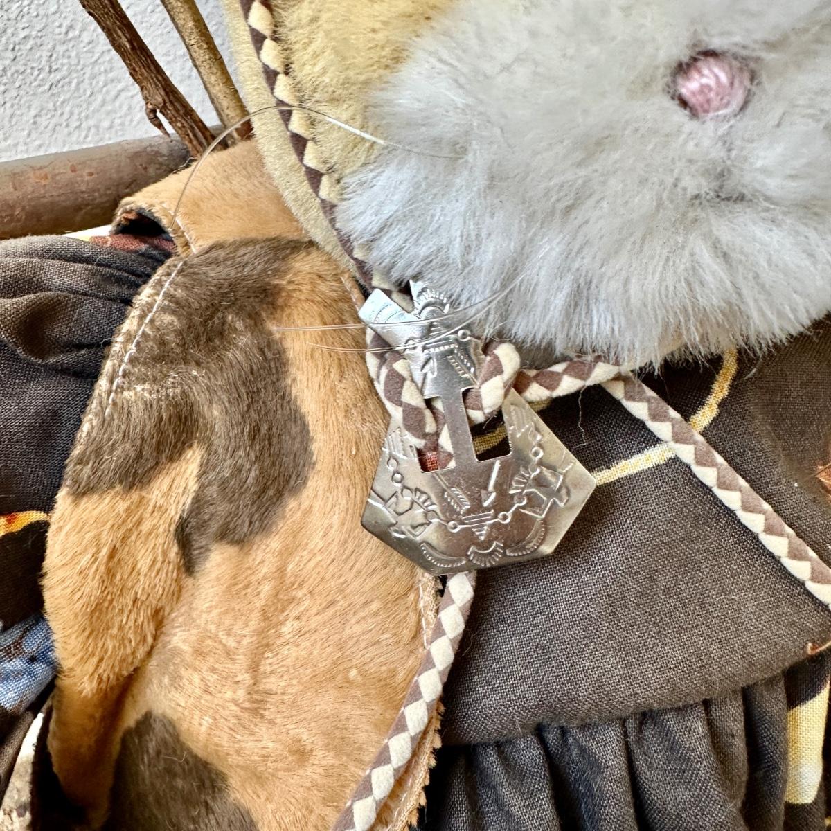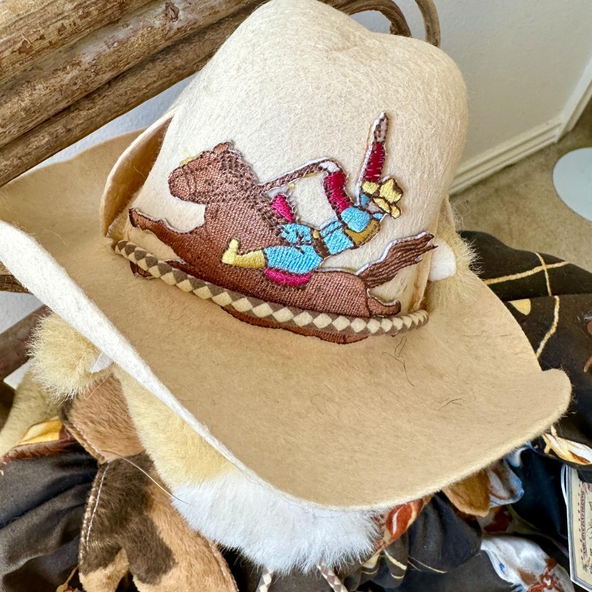 Miss Kitty by Bunnies by the Bay. Cowboy inspired dress with fake fur vest and hat with metal bolo.
