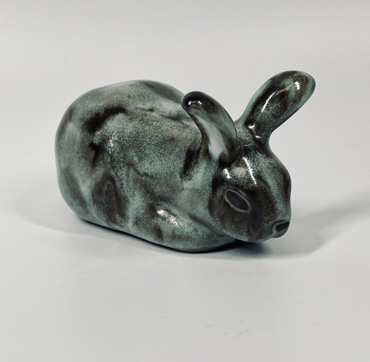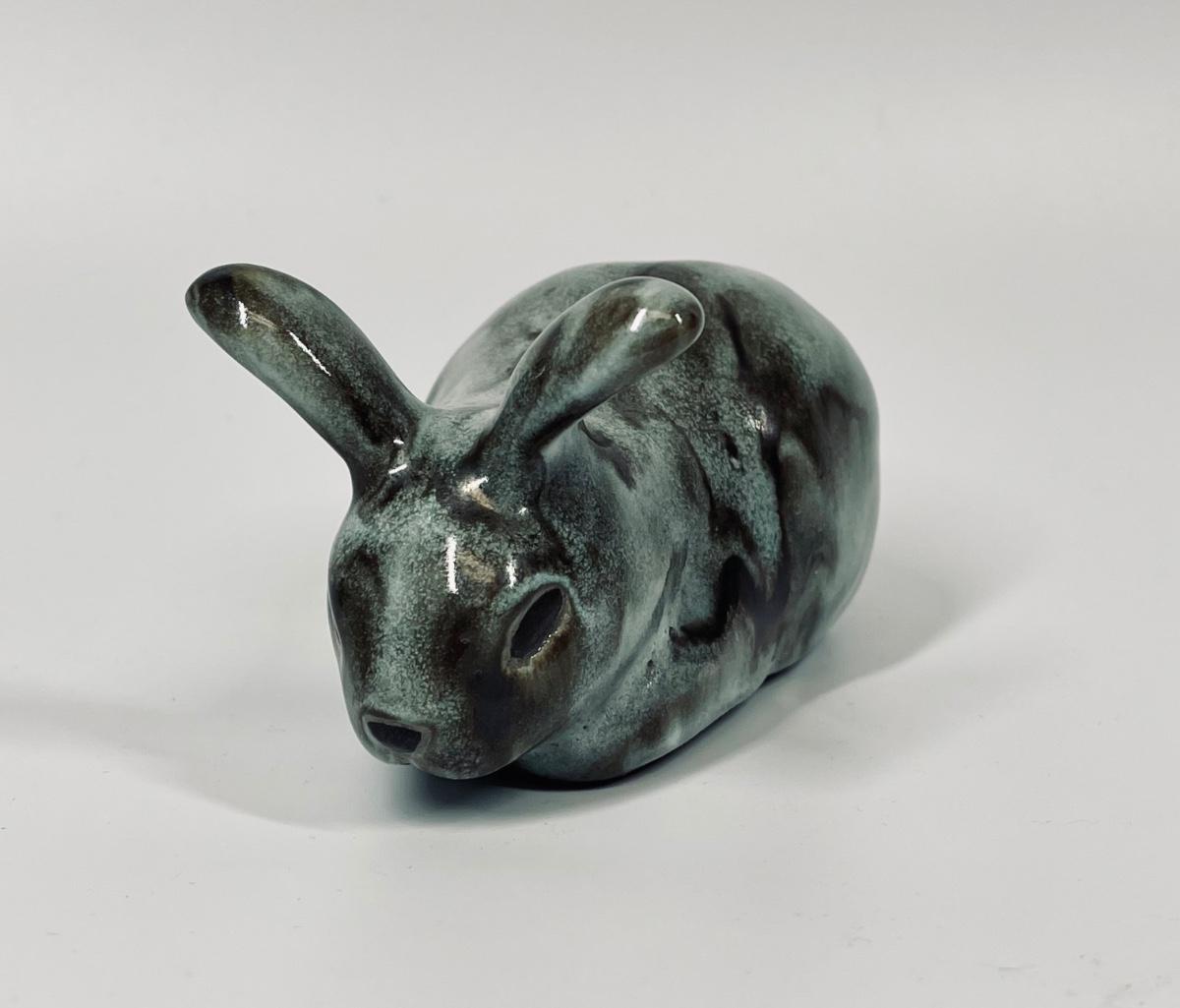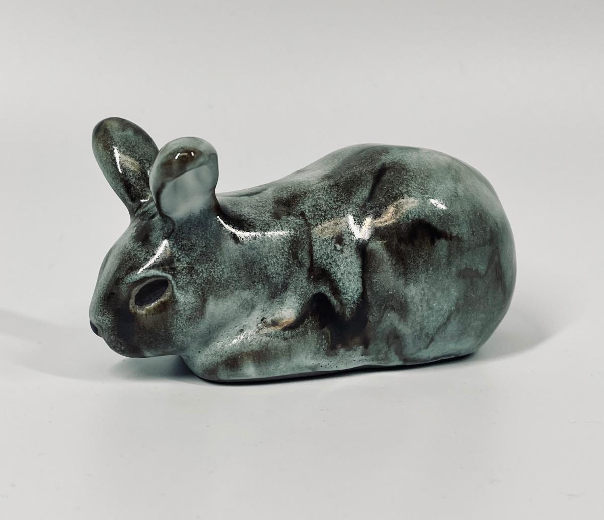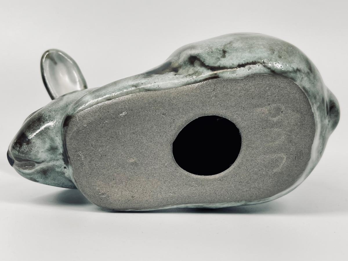 Mottled turquoises and browns coloring in this cute ceramic Figurine. It is approx 4” high.
