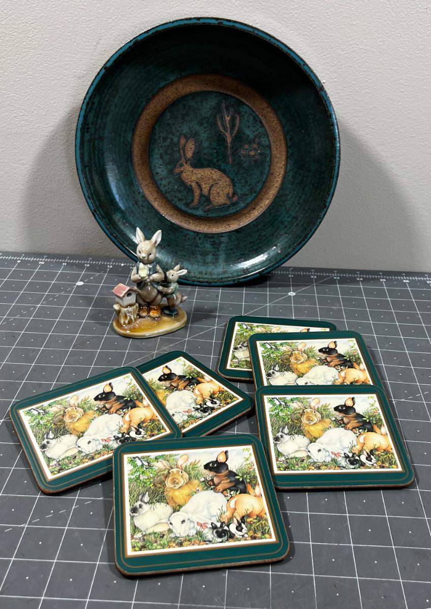Bunny Lot: Bowl, Trinket, Coasters