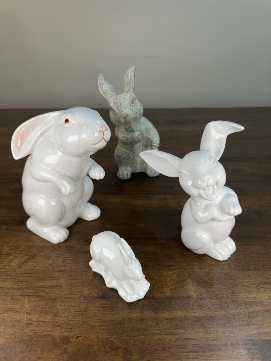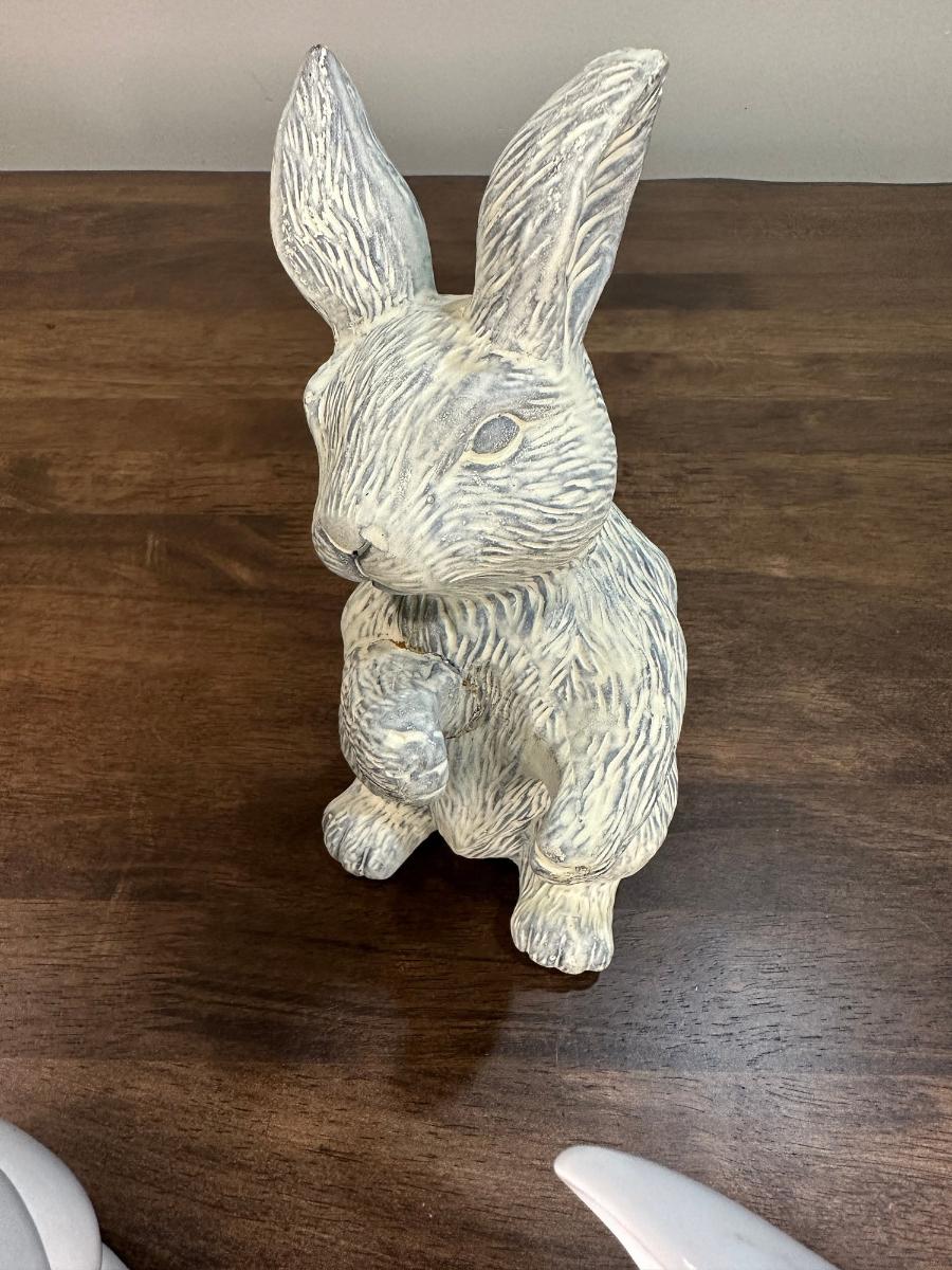 1. Bunny Statues Mix Lot. One of the bunny statue's hand was broken and then glued back on.