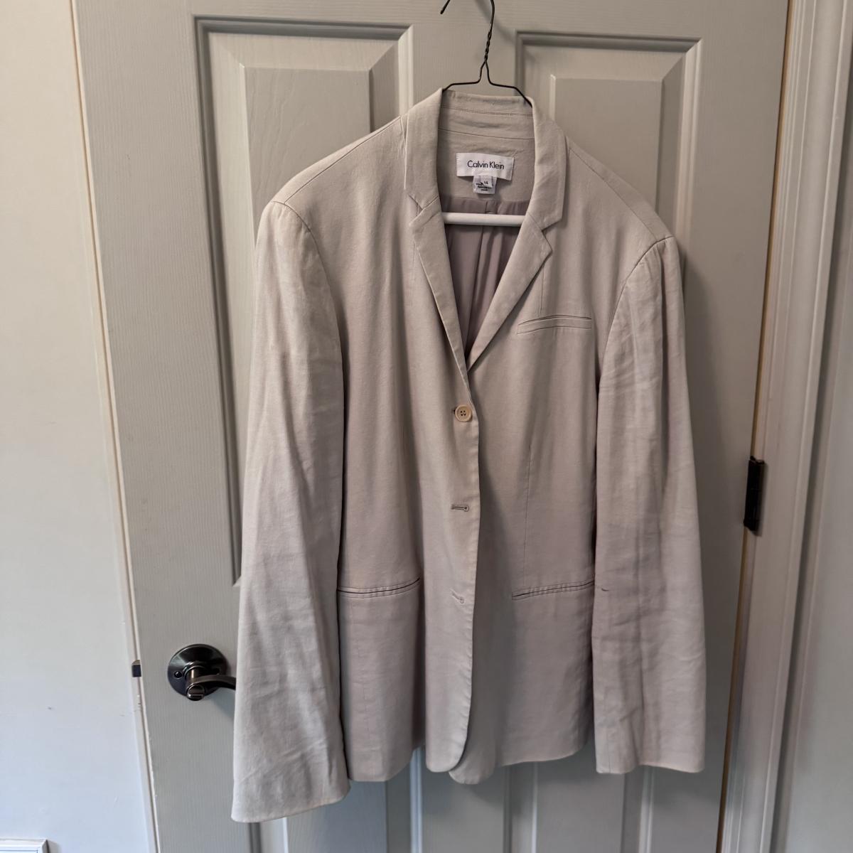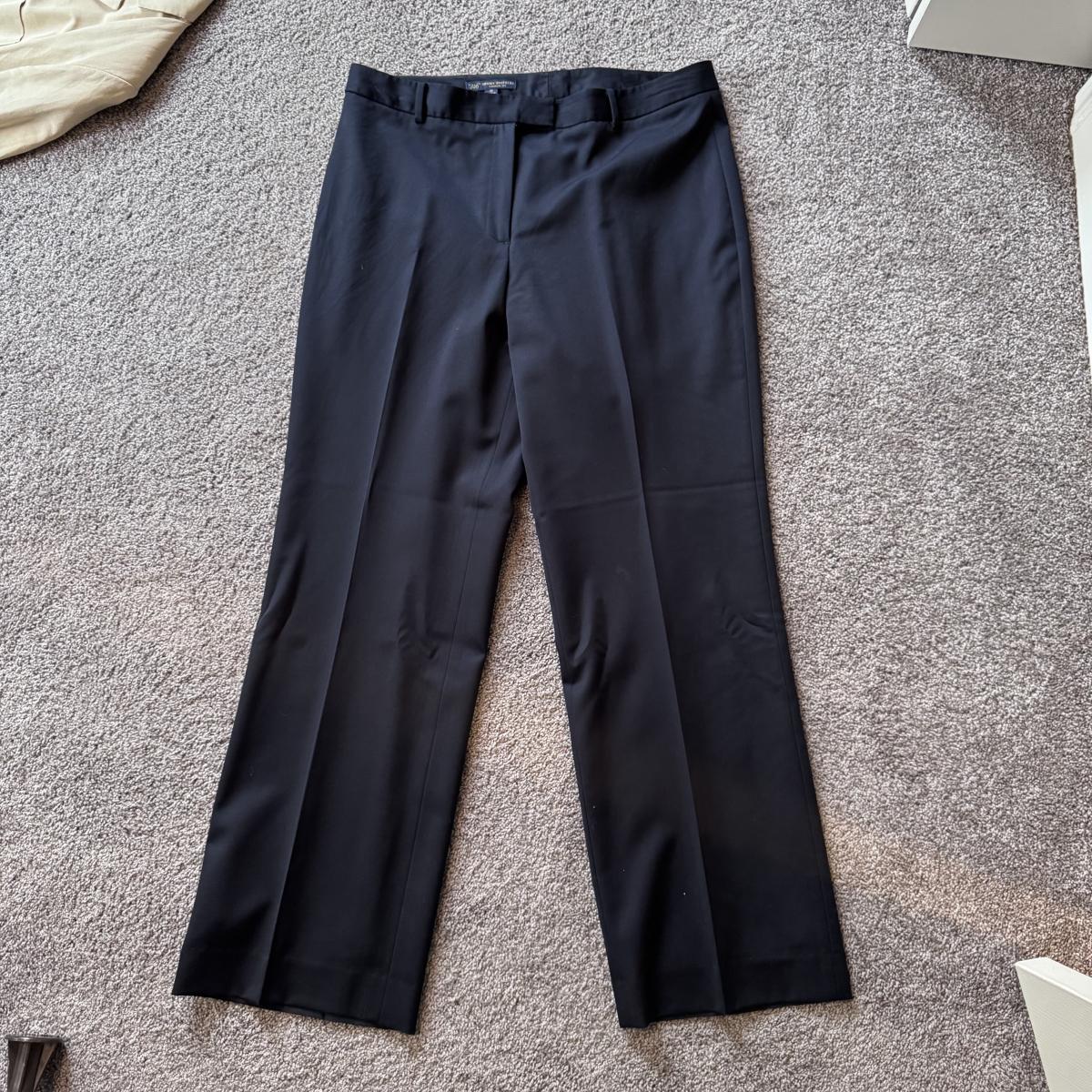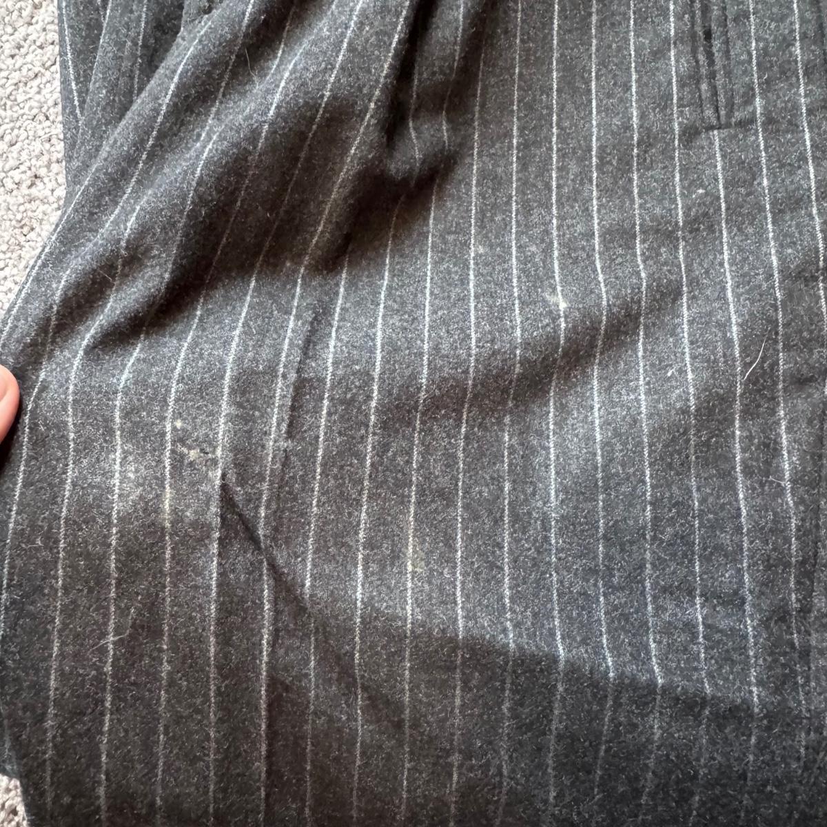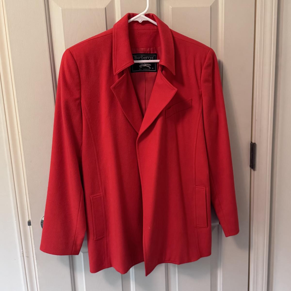 This lot includes seven women’s blazers, four pant suits with top and bottoms, and five dress pants in various colors. You’ll find the following brands: Burberry, Brooks Brothers, Lafayette 148, Calvin Klein, Ralph Lauren, J. Crew, Zanella, and Bernard Zins. Most pieces are a size 14 - see pictures for all sizes. The Burberry red coat has a small stain on the front that appears to be a pen mark - see picture. The pinstriped pants pictured at the end appear to have a small mold spot - see pictures. Shipping available.