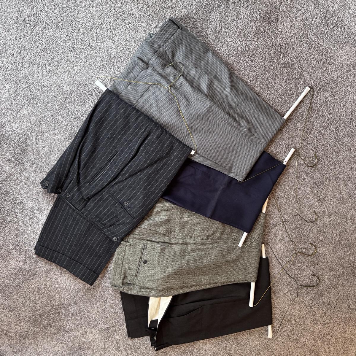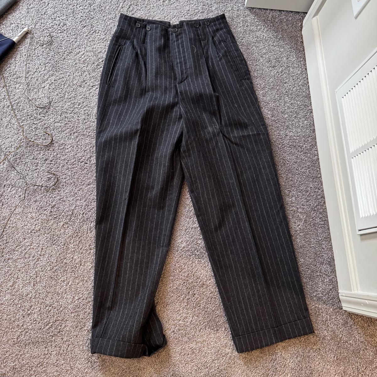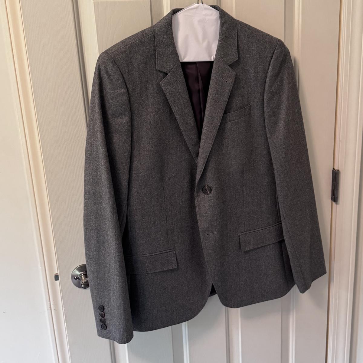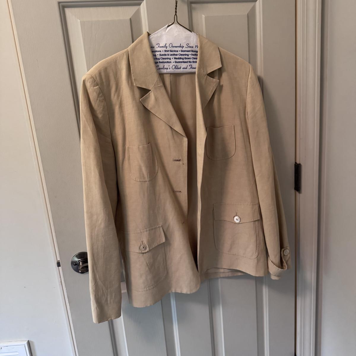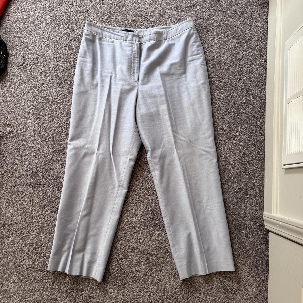 This lot includes seven women’s blazers, four pant suits with top and bottoms, and five dress pants in various colors. You’ll find the following brands: Burberry, Brooks Brothers, Lafayette 148, Calvin Klein, Ralph Lauren, J. Crew, Zanella, and Bernard Zins. Most pieces are a size 14 - see pictures for all sizes. The Burberry red coat has a small stain on the front that appears to be a pen mark - see picture. The pinstriped pants pictured at the end appear to have a small mold spot - see pictures. Shipping available.