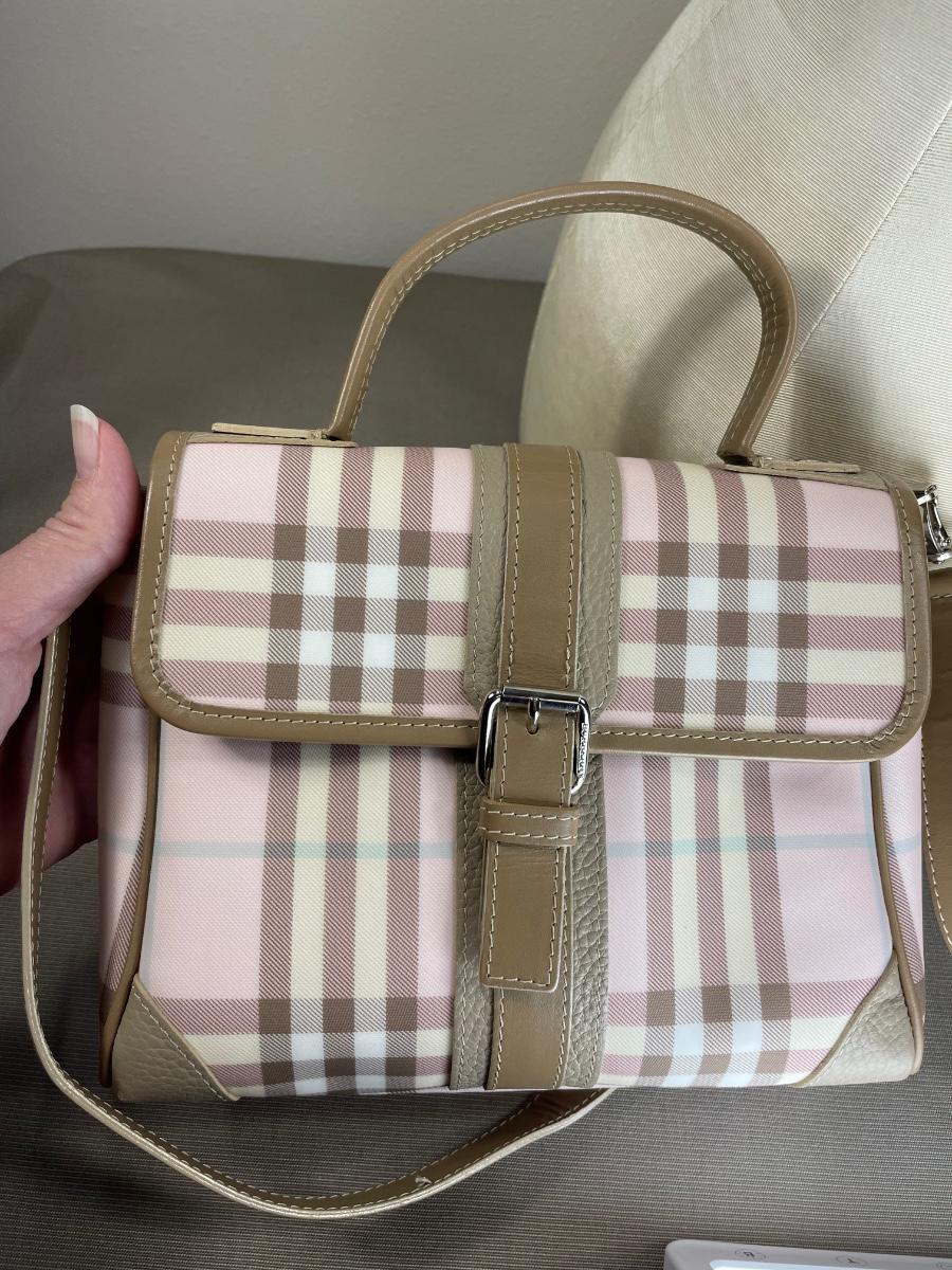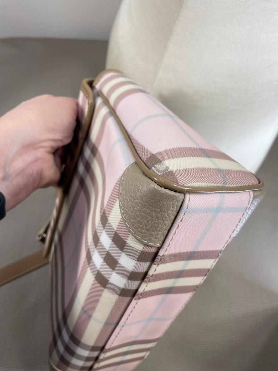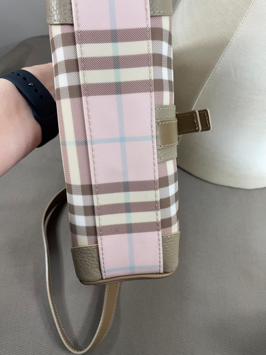 Burberry Pink/Brown House Check PVC Top Handbag