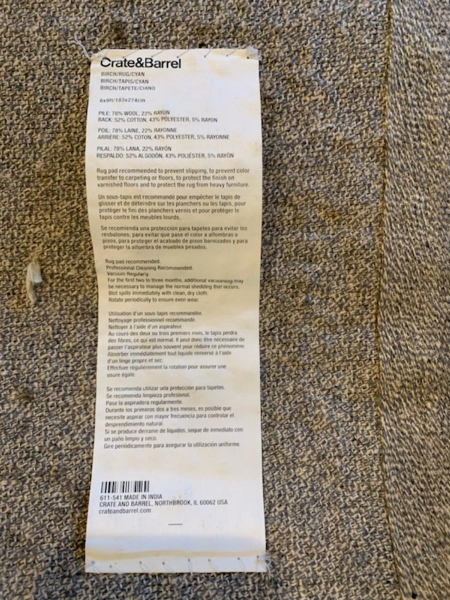Pre-owned, nice condition. Crate n Barrel. 6 feet by 9 feet