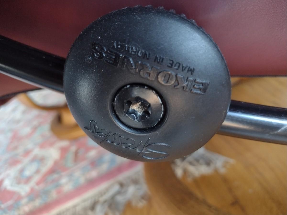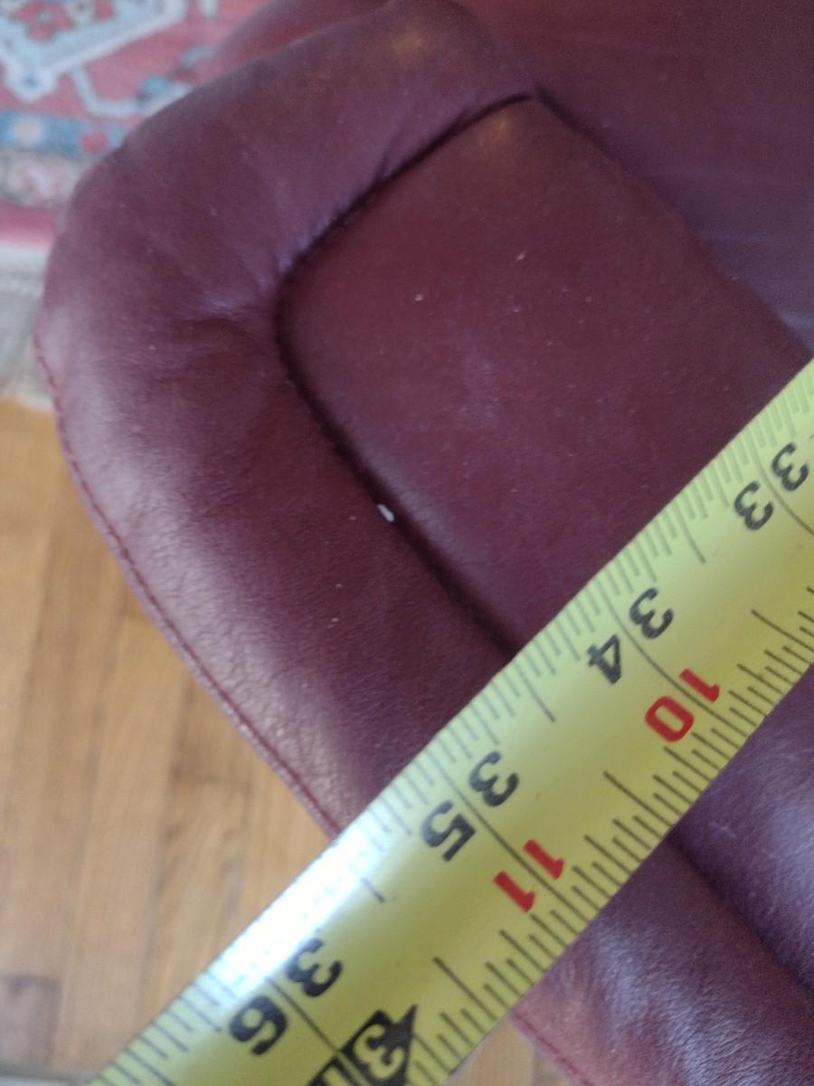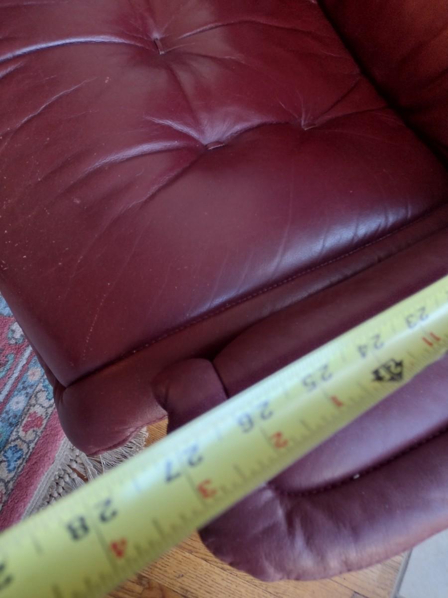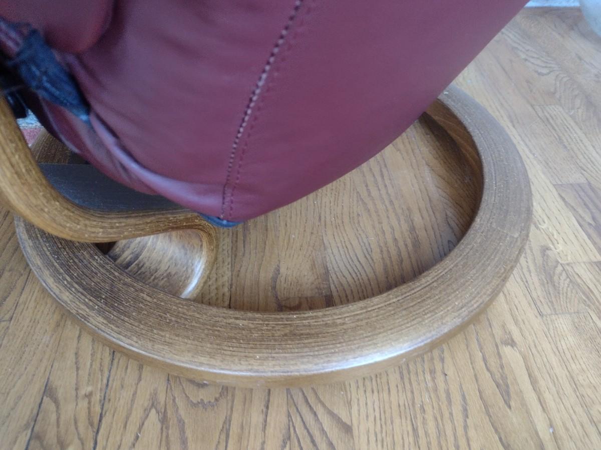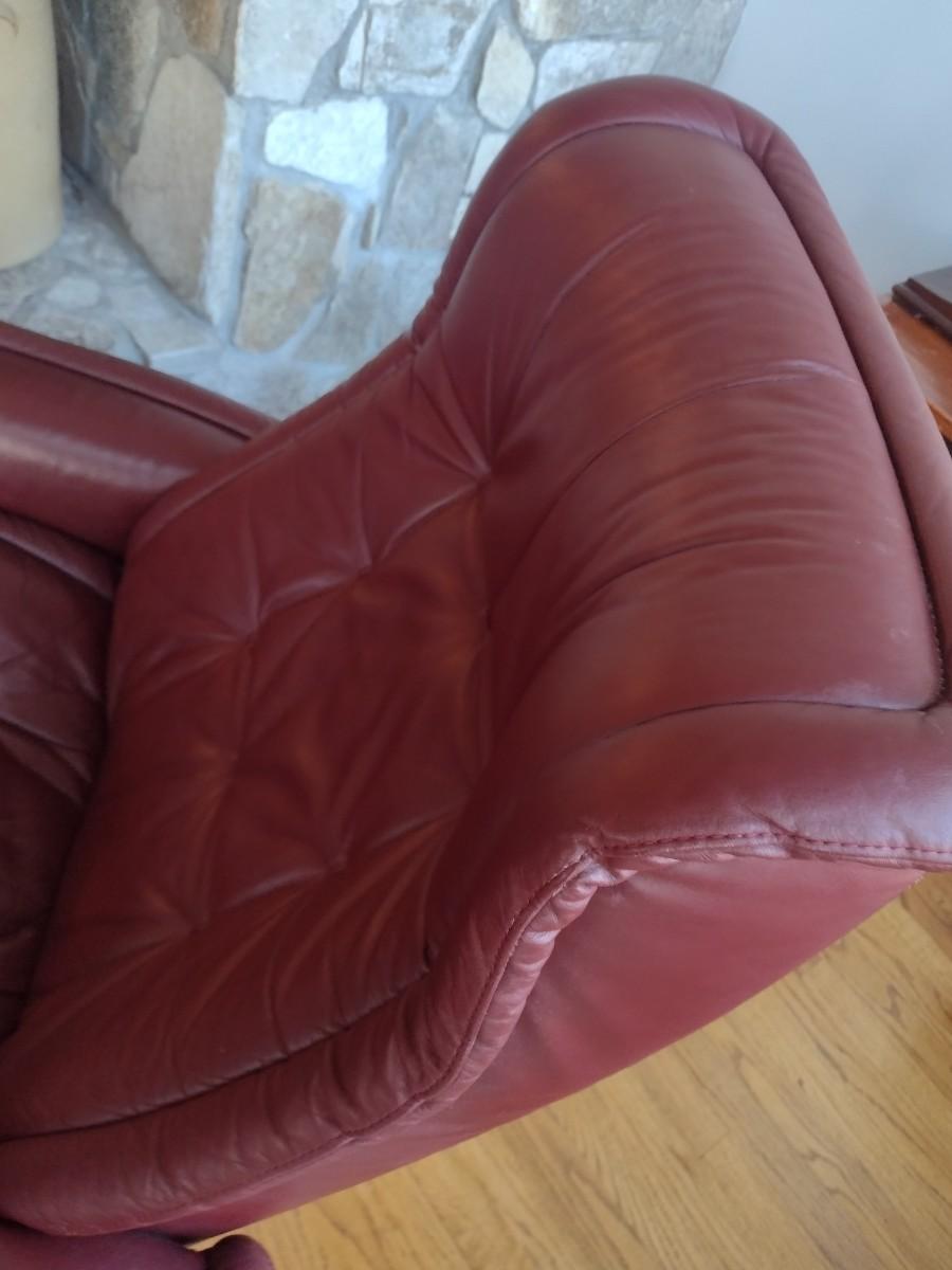 Burgandy Leather Ekornes Gravity Chair with Ottoman has wear and scratches as shown.