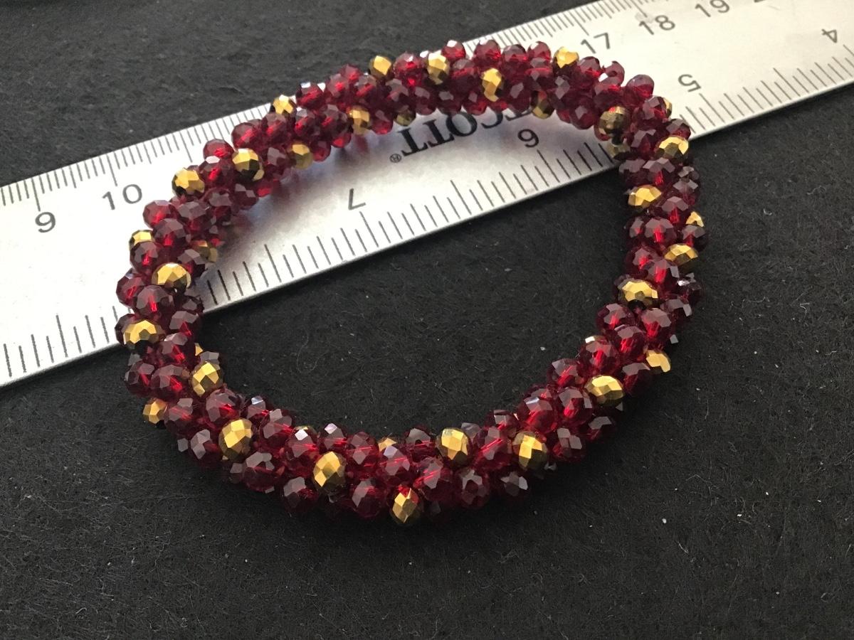 Burgendy and Gold Glass Beaded Bracelet