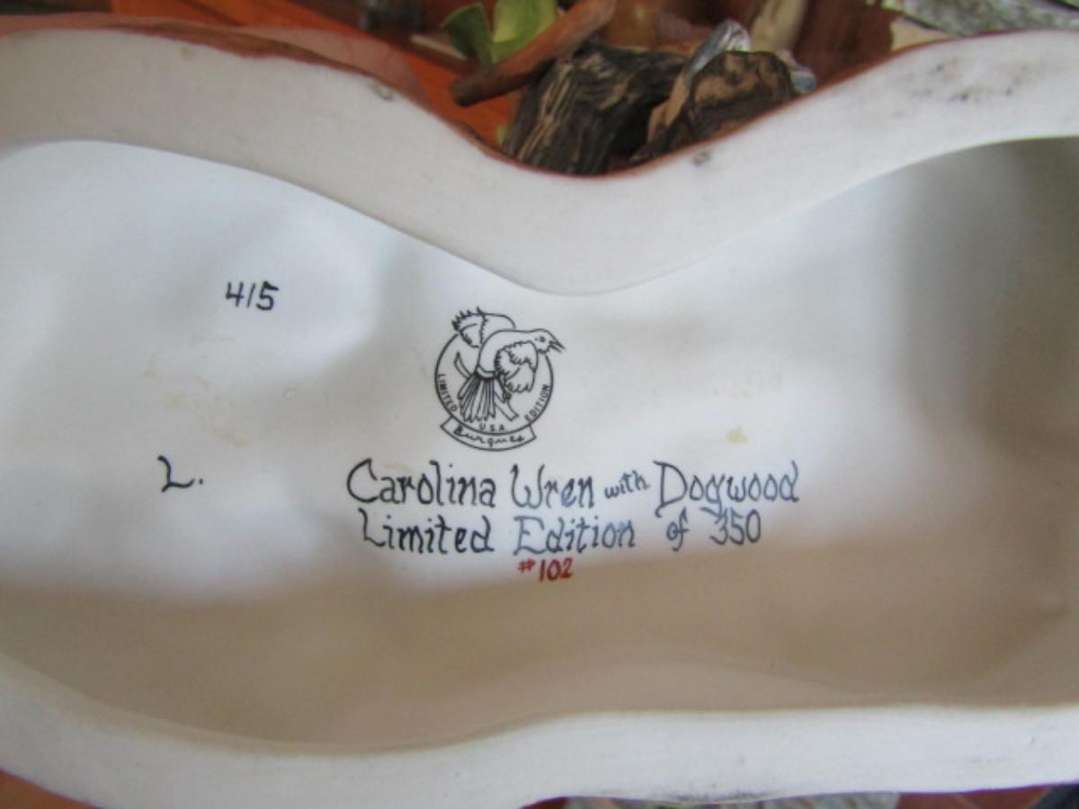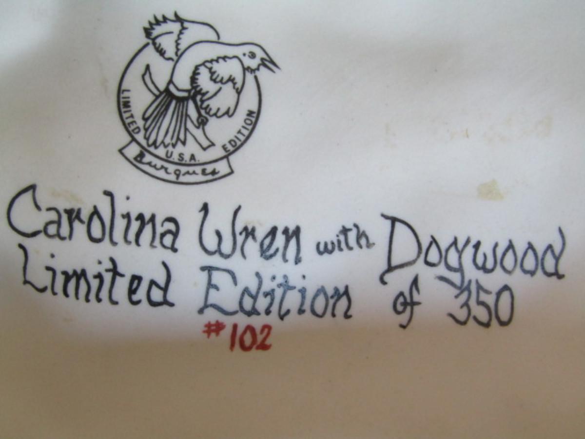 Burgues 'Carolina Wren and Dogwood' Limited Edition Porcelain Figurine- #102 of 350- Approx 10" Tall