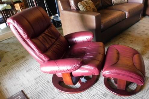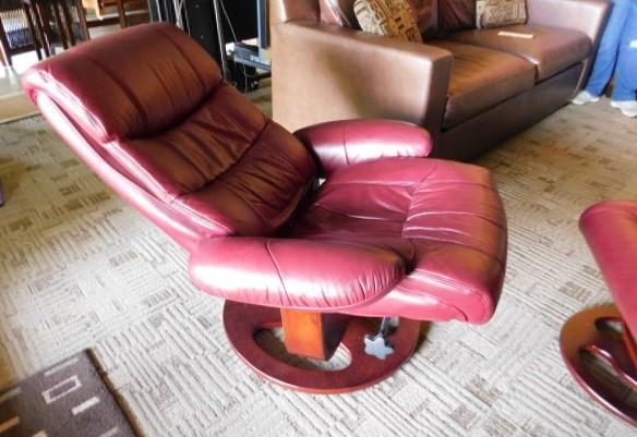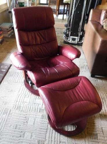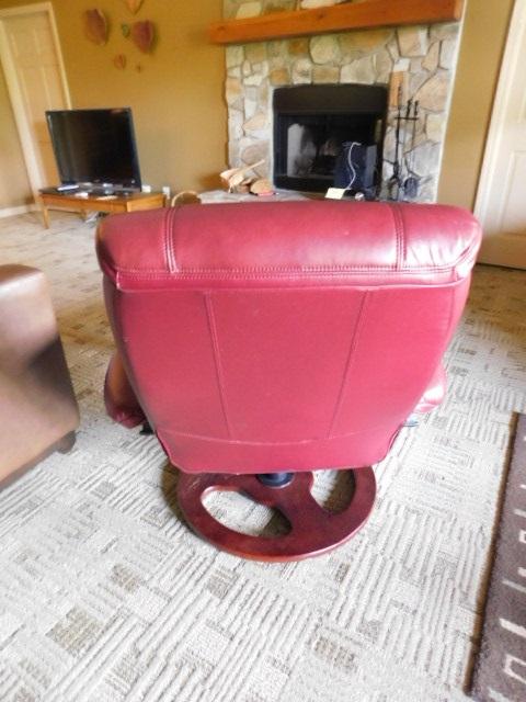 Burgundy Ergonomic Zero Gravity Swivel Recliner Leather Chair with Ottomon good condition. Lower level. small grassy incline to reach drive. Must bring assistance