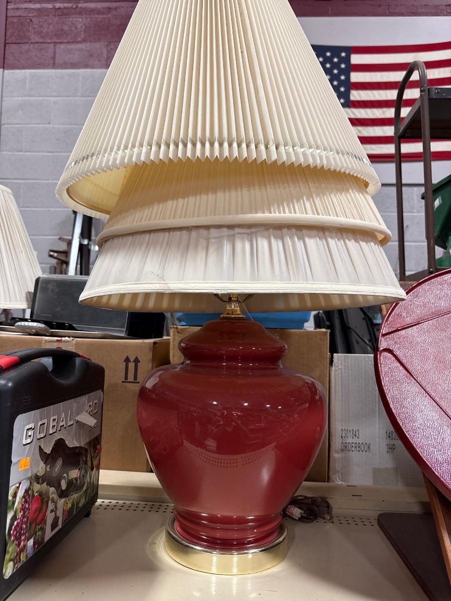 Burgundy lamp with three shades