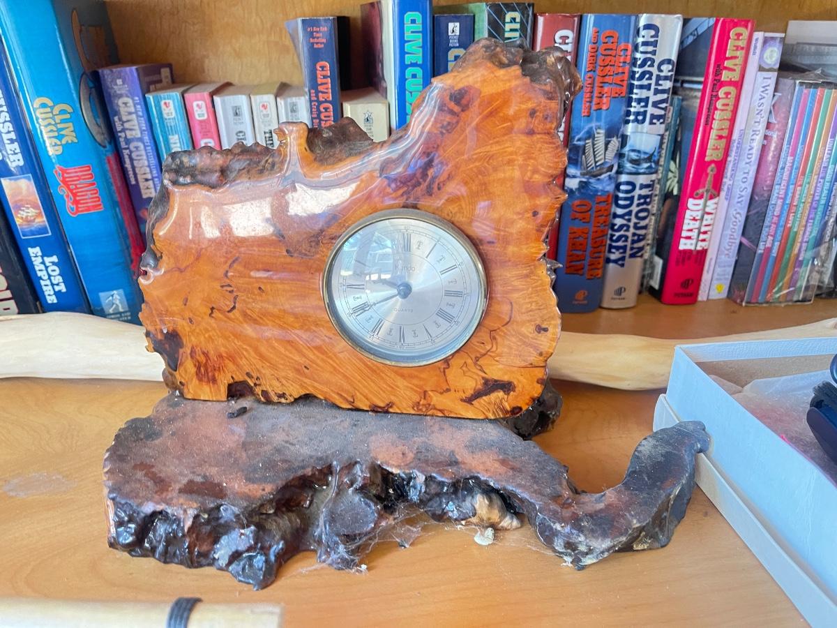 Burl clock and shaving equipment