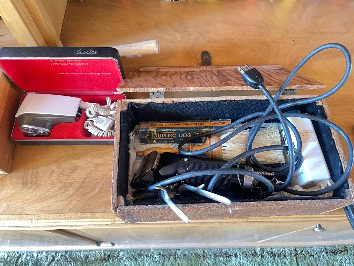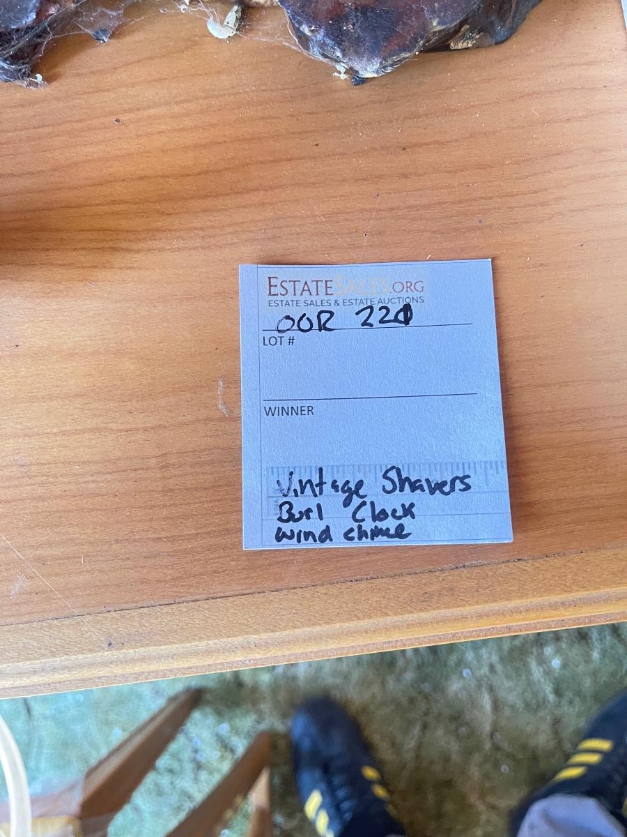 Burl  clock and shaving equipment