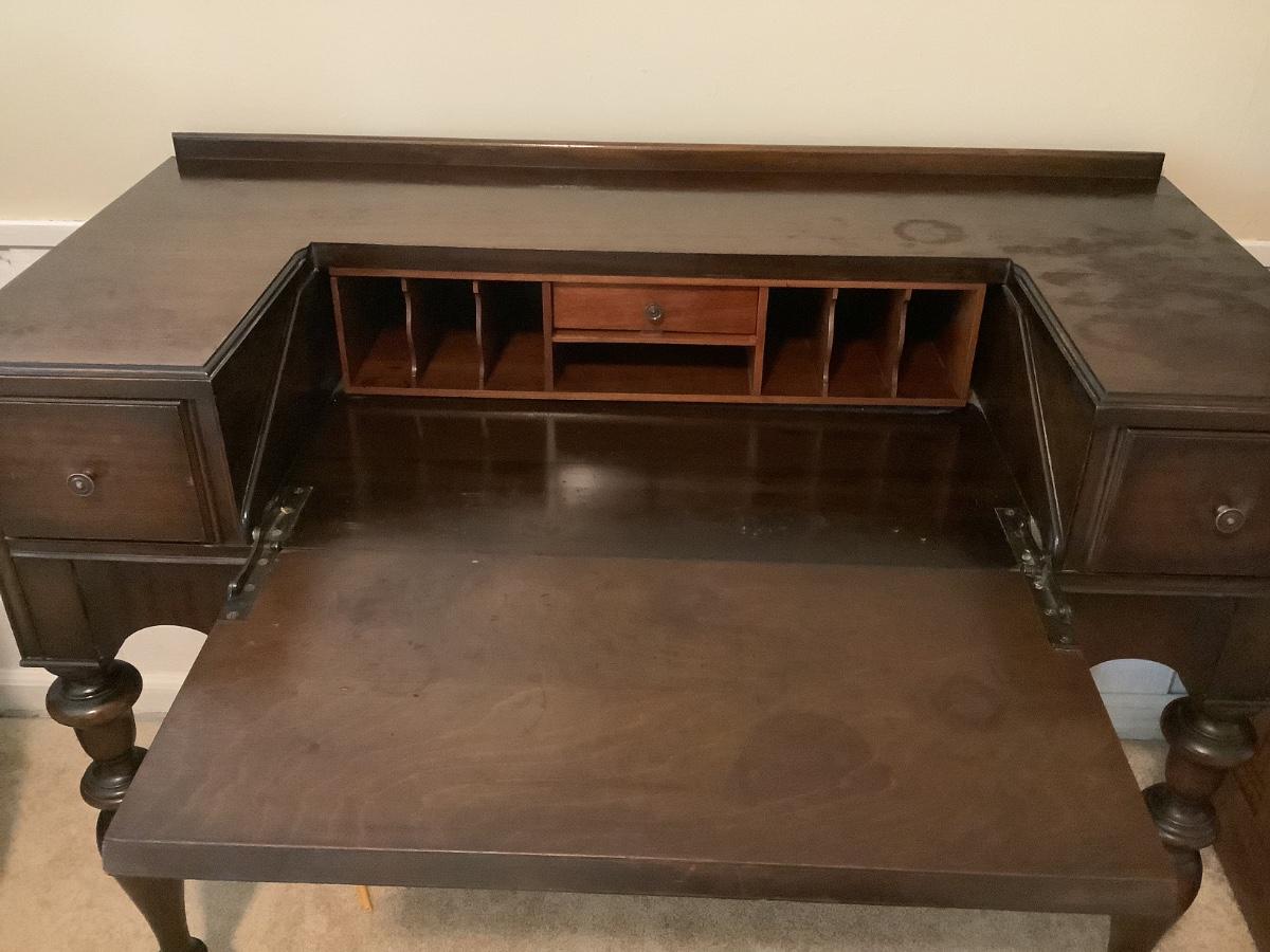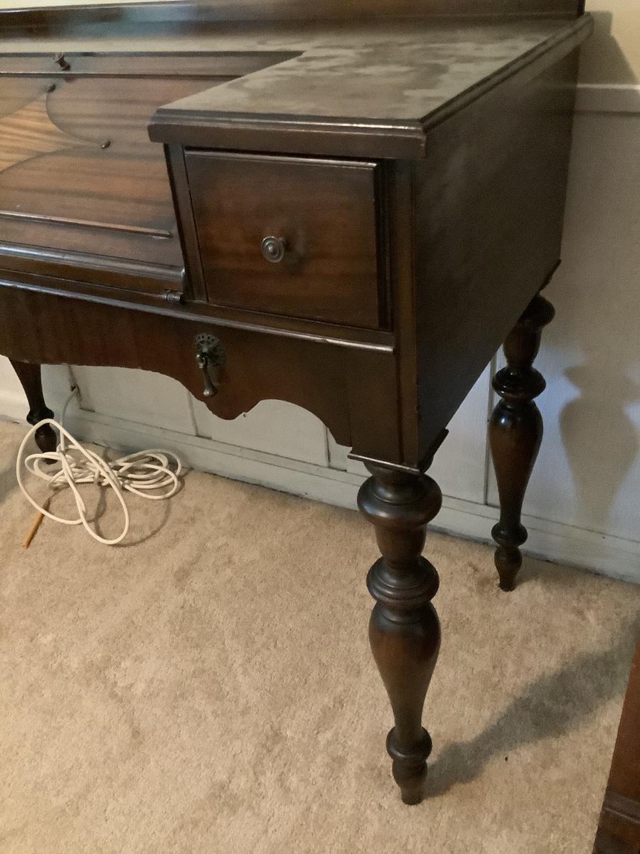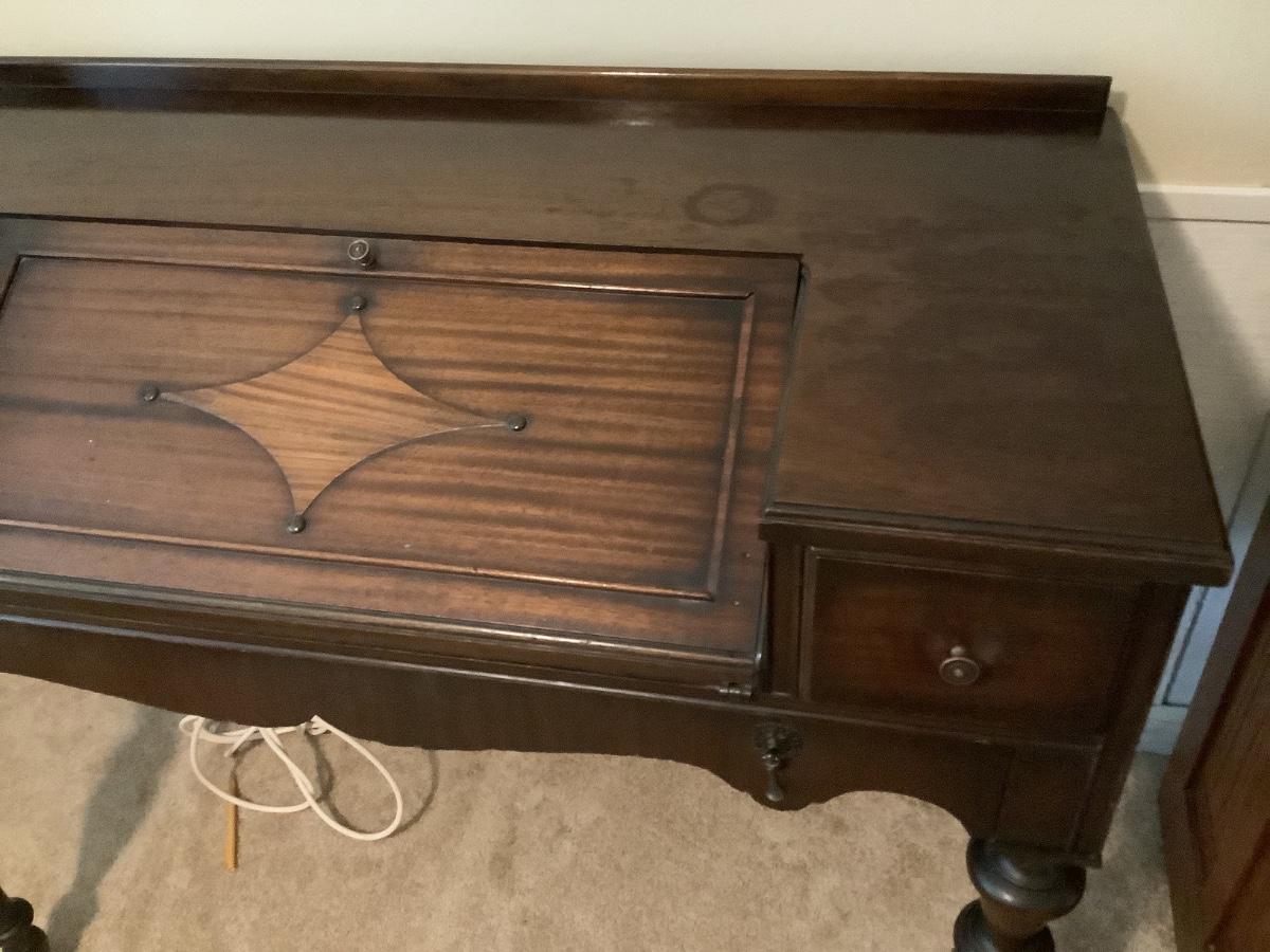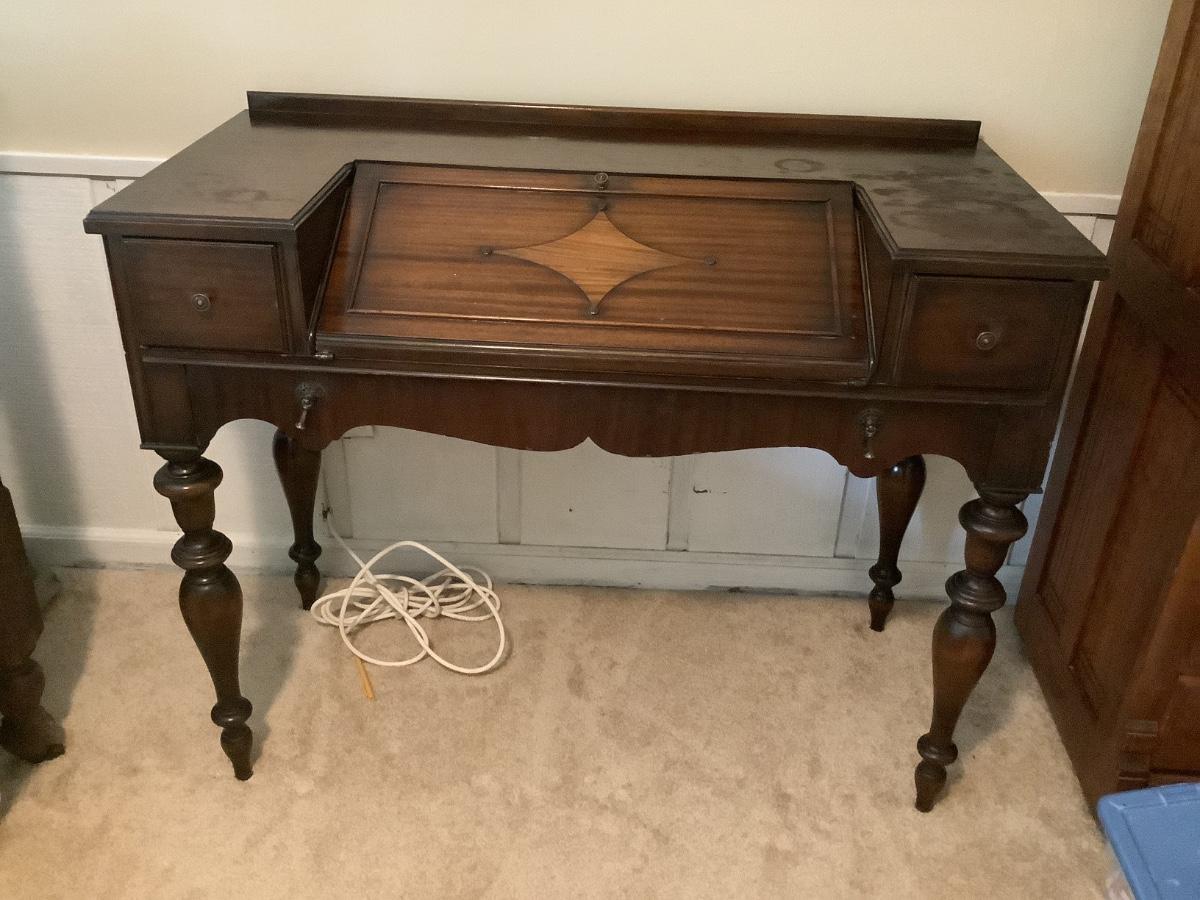 Burl Walnut, Eastlake Ladies’ Writing Desk, made in Grand Rapids, Michigan Chair Co,