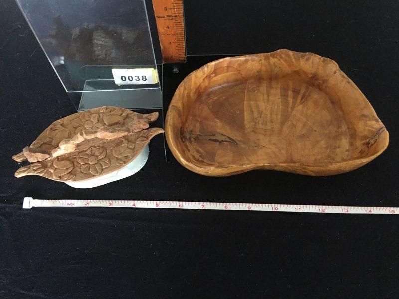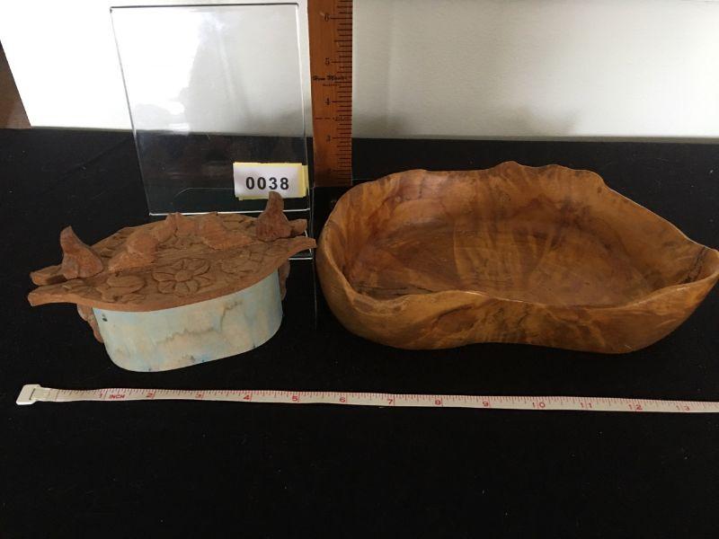 Beautiful, hand-made Burl wood bowl and a smaller, carved, hand - made Swedish wood box