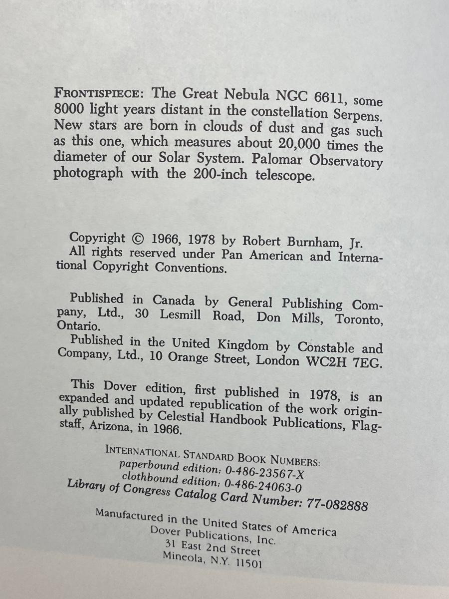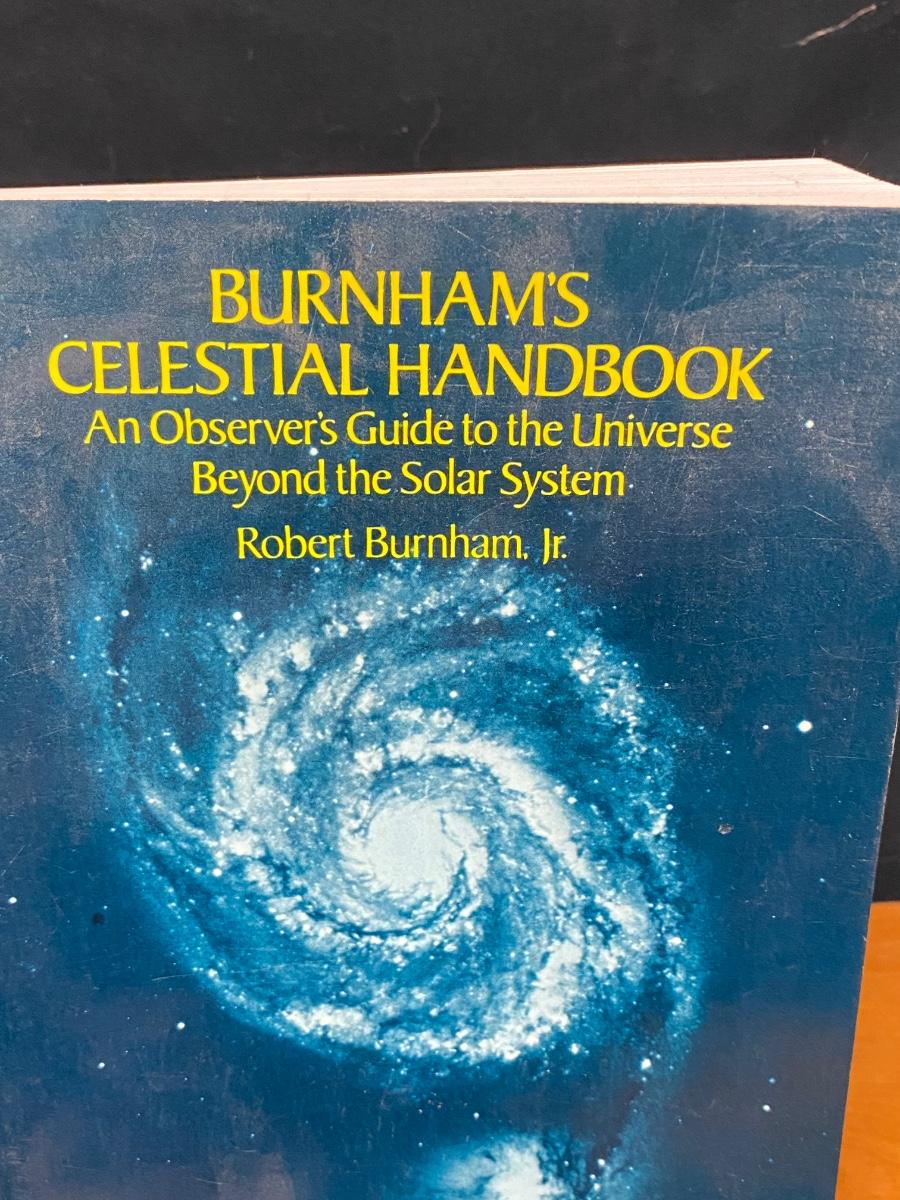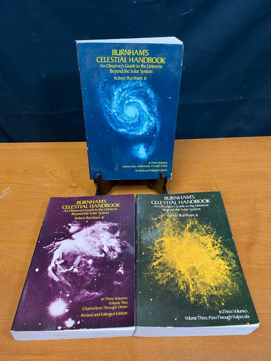 Burnham's Celestial Handbook, a three piece book set. Detailed information on the stars and constellations of the universe. Great for the novice astronomer and star gazer. Good condition.