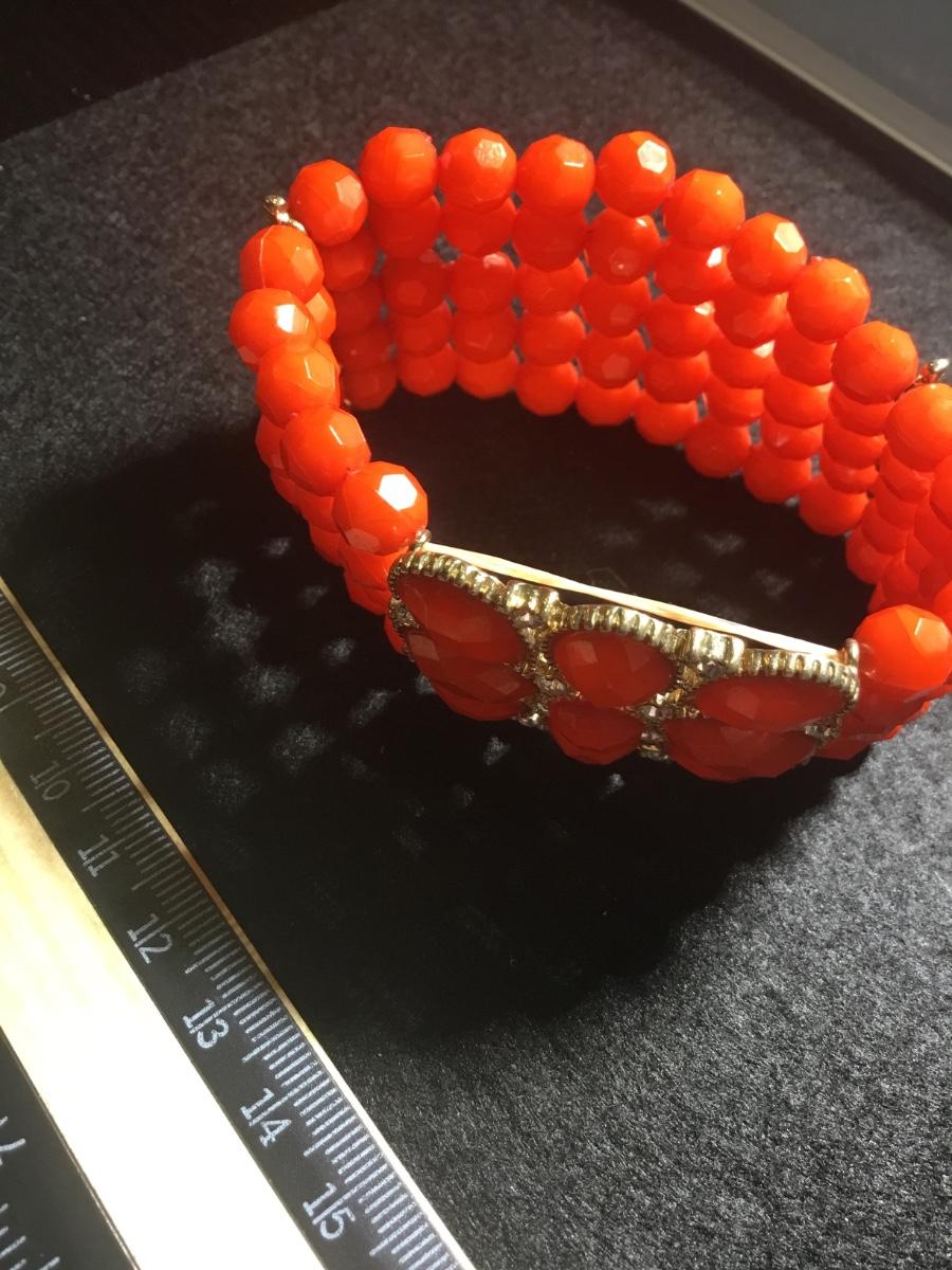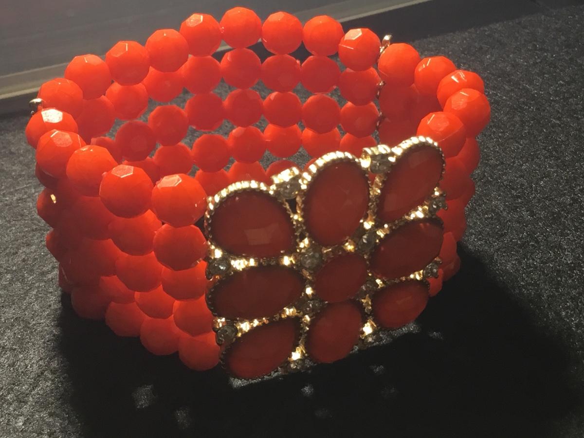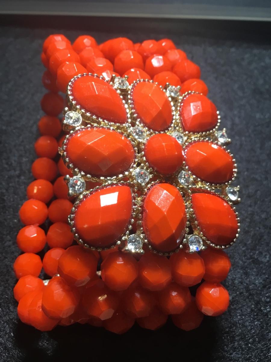 Burnt orange or red multilayer beaded stretchy fashion bracelet